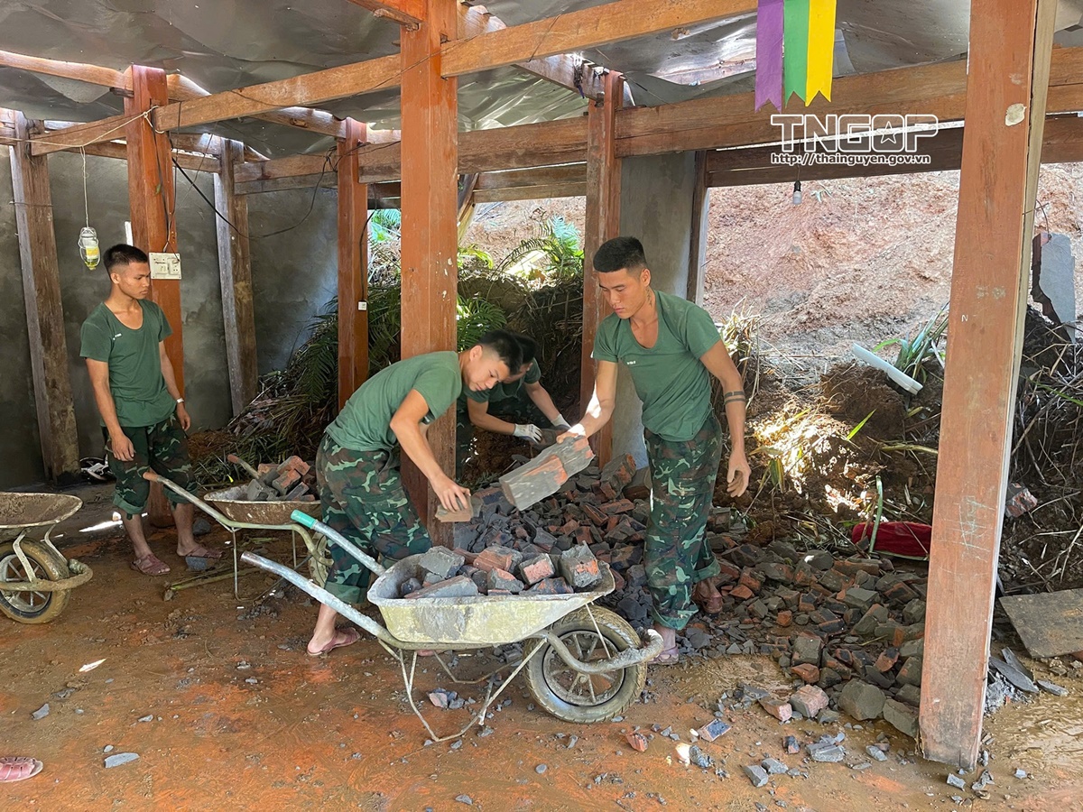 Đồng Hỷ: Trên 100 cán bộ, chiến sĩ Lữ đoàn Phòng không 210 hỗ trợ khắc phục hậu quả thiên tai