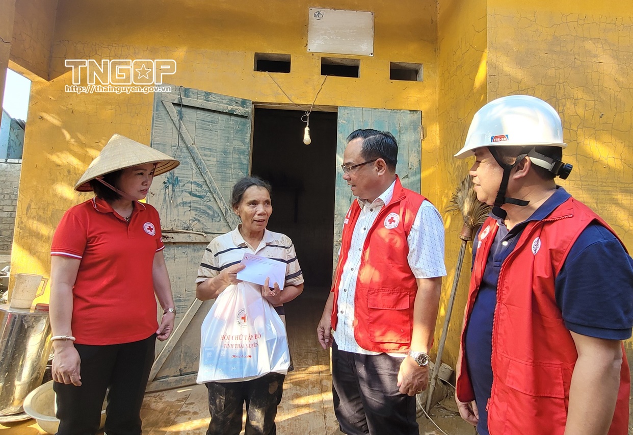 Chiều 10/10, Đoàn công tác của Trung ương Hội Chữ thập đỏ Việt Nam đã đến thăm, trao quà hỗ trợ các hộ nghèo, cận nghèo và gia đình chính sách có hoàn cảnh đặc biệt bị thiệt hại do mưa lũ tại tổ 10, phường Quan Triều, tỉnh Thái Nguyên. Cùng đi có lãnh đạo Hội Chữ thập đỏ tỉnh Thái Nguyên.