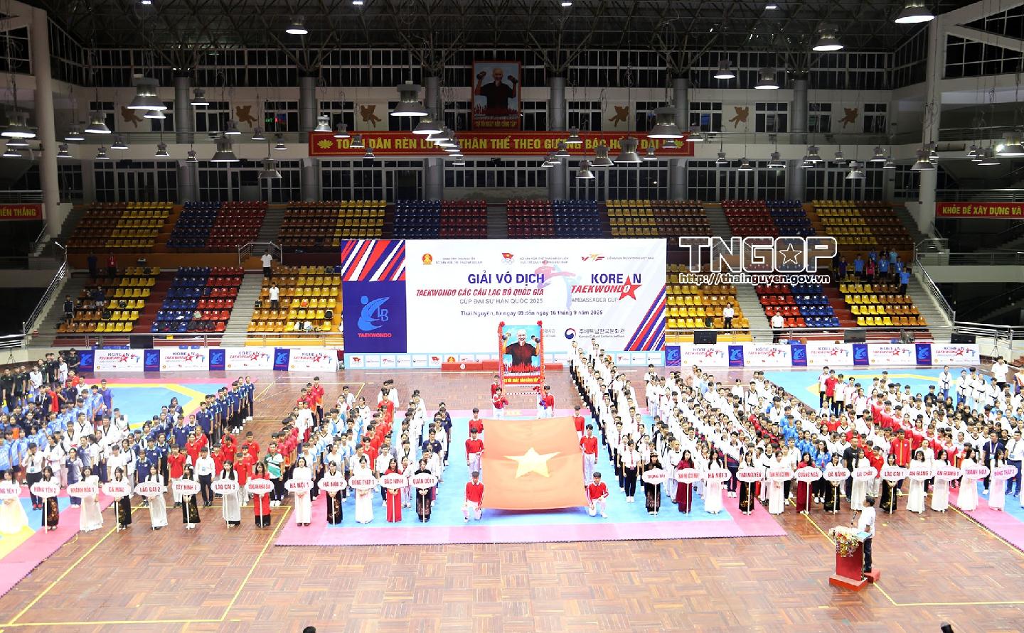 Tối 11/9, tại Nhà thi đấu đa năng tỉnh Thái Nguyên (Tổ 6A, phường Đức Xuân) đã diễn ra Lễ khai mạc Giải Vô địch Taekwondo các câu lạc bộ quốc gia - Cúp Đại sứ Hàn Quốc năm 2025. Đây là giải đấu có quy mô toàn quốc, là dịp để các câu lạc bộ, địa phương đánh giá chất lượng phong trào, đồng thời góp phần quảng bá, lan tỏa tinh thần thượng võ.