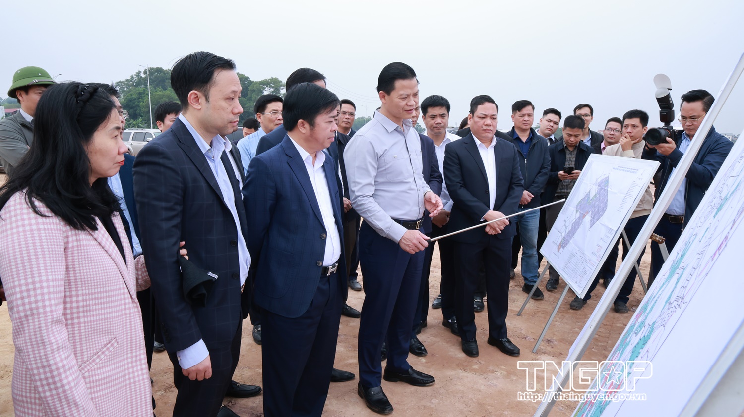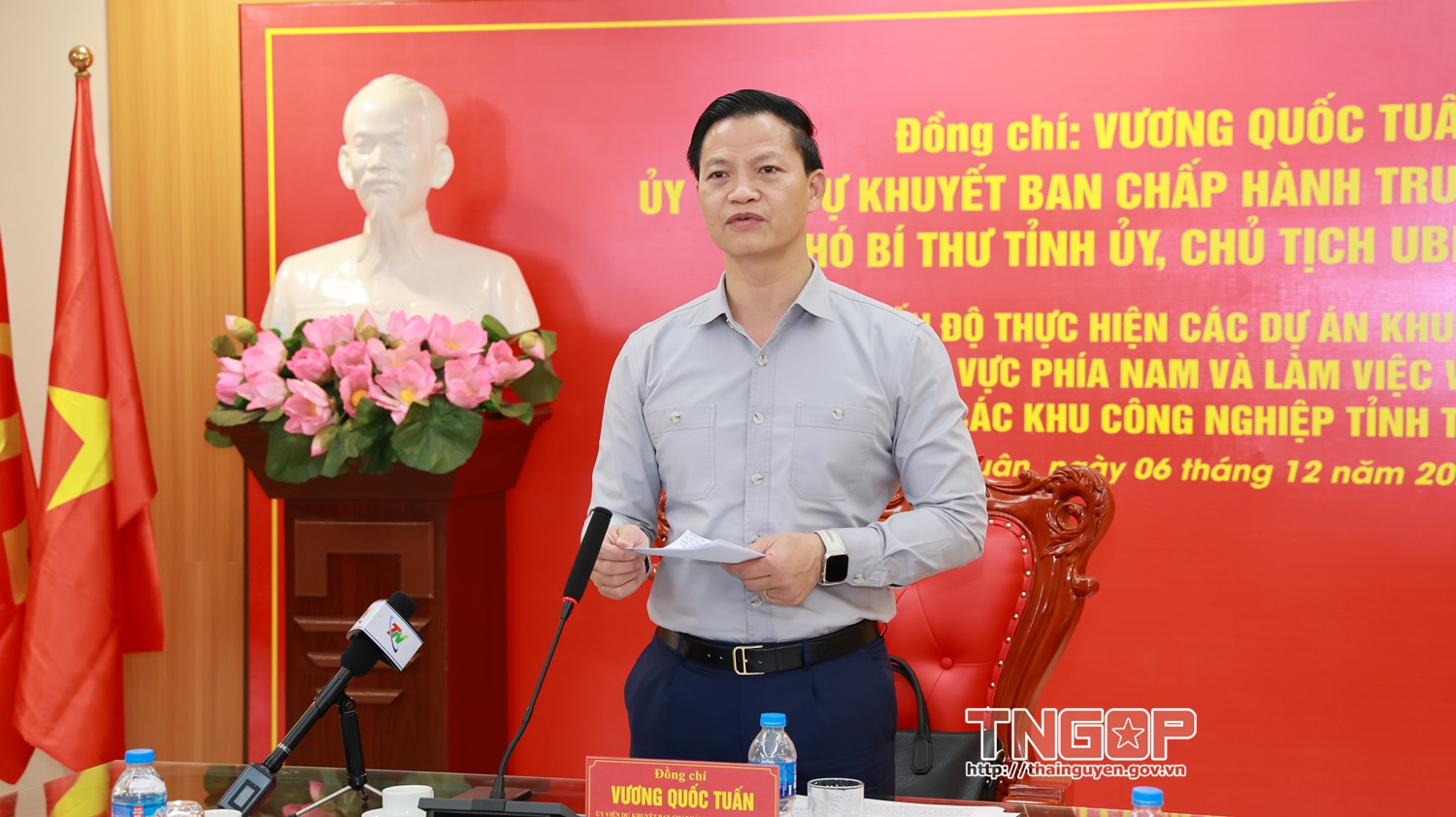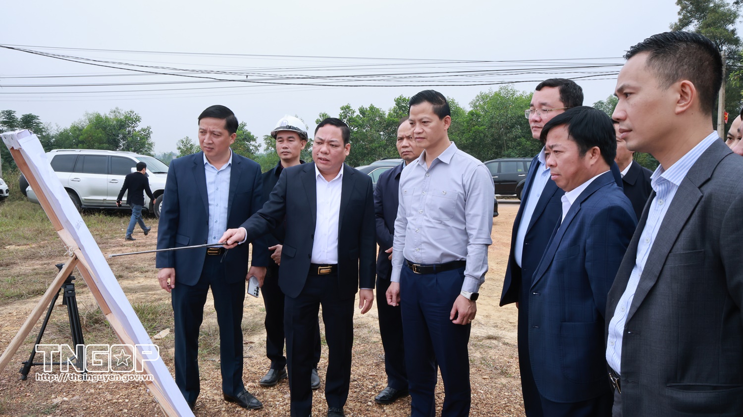 Chủ tịch UBND tỉnh Vương Quốc Tuấn kiểm tra thực địa tại Dự án đầu tư xây dựng và kinh doanh kết cấu hạ tầng KCN Phú Bình, đây là công trình được lựa chọn là 1 trong 232 công trình của toàn quốc và là 1 trong 3 công trình của Thái Nguyên được khởi công, khánh thành để chào mừng Đại hội đại biểu toàn quốc lần thứ XIV của Đảng vào dịp 19/12 tới đây