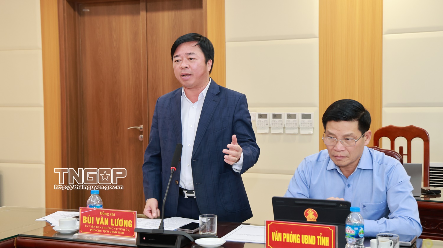 Đồng chí Bùi Văn Lương, Ủy viên Ban Thường vụ Tỉnh ủy, Phó Chủ tịch UBND tỉnh phát biểu tại Chương trình làm việc