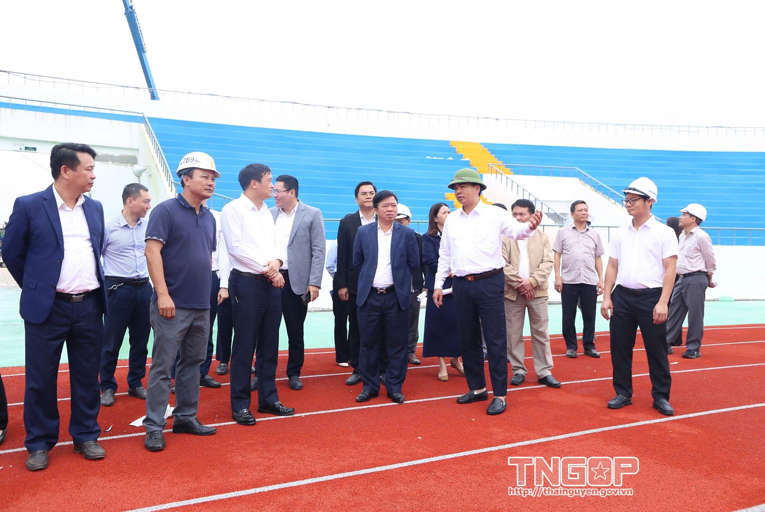 Đồng chí Phó Chủ tịch UBND tỉnh Bùi Văn Lương cùng Đoàn công tác kiểm tra và nghe báo cáo về công tác chuẩn bị khánh thành Sân vận động tỉnh Thái Nguyên