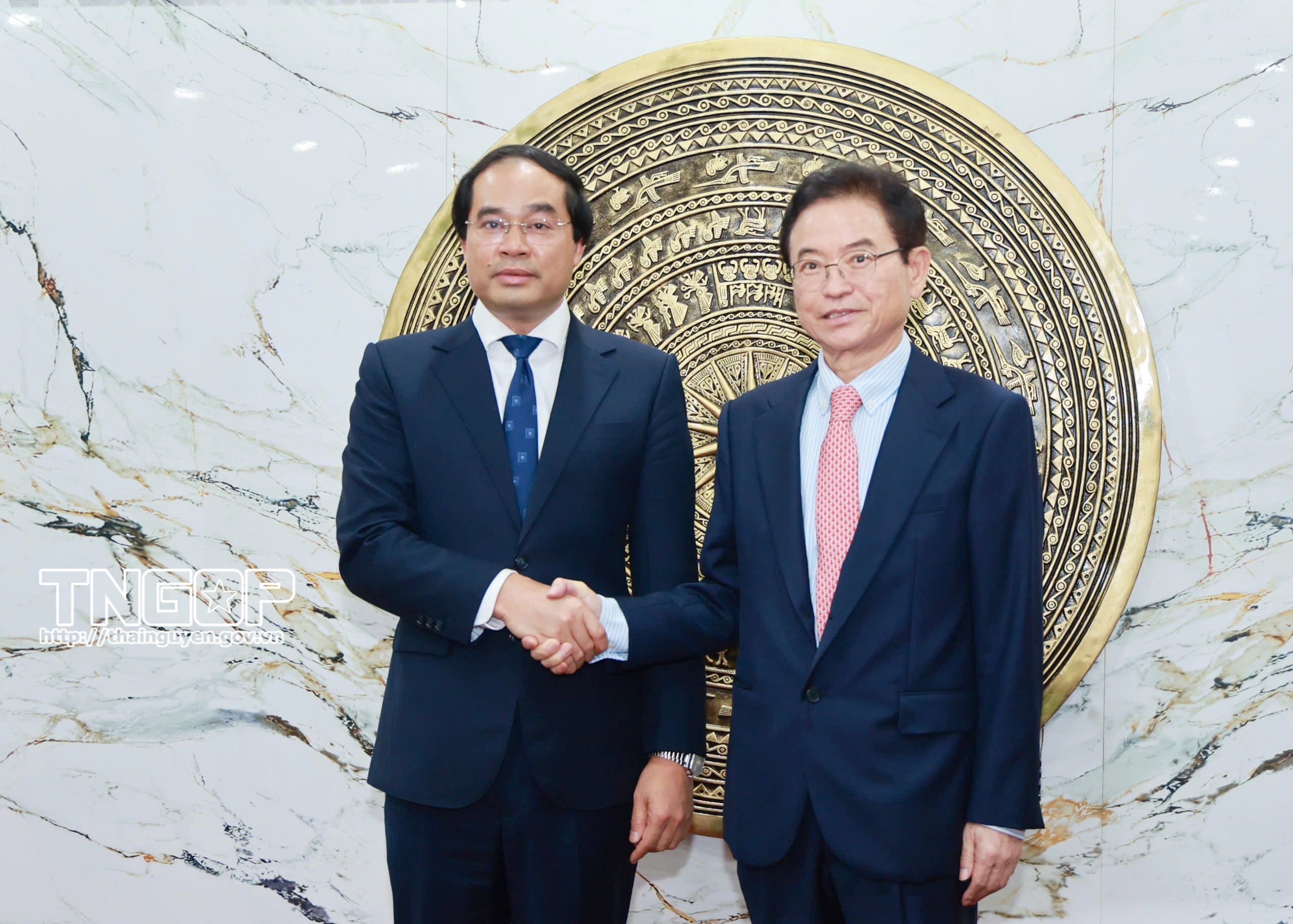 Đồng chí Bí thư Tỉnh ủy Thái Nguyên cũng trao đổi nhanh với Đoàn một số thông tin về tỉnh Thái Nguyên sau sắp xếp, sáp nhập đơn vị hành chính cấp tỉnh. Trong đó nhấn mạnh về tình hình thu hút đầu tư và hoạt động sản xuất, kinh doanh của cộng đồng doanh nghiệp Hàn Quốc tại Thái Nguyên. Hiện, trên địa bàn tỉnh Thái Nguyên có 234 dự án FDI còn hiệu lực với tổng vốn đăng ký trên 11,35 tỷ USD; các nhà đầu tư Hàn Quốc có 116 dự án, với tổng vốn hơn 9 tỷ USD. Tiêu biểu là Tập đoàn Samsung với các dự án lớn, góp phần đưa Thái Nguyên trở thành trung tâm sản xuất điện tử hàng đầu Việt Nam. Trên cơ sở kết quả hợp tác trong 20 năm qua, thời gian tới, tỉnh Thái Nguyên mong muốn hai địa phương tiếp tục triển khai hiệu quả các biên bản ghi nhớ đã ký kết; đồng thời nghiên cứu, xây dựng và ký kết mới các văn bản hợp tác với nội dung cụ thể, phù hợp tiềm năng, thế mạnh của mỗi địa phương; tiếp tục duy trì trao đổi đoàn các cấp và tổ chức các chương trình trao đổi, học tập kinh nghiệm nhằm tăng cường sự hiểu biết lẫn nhau; thúc đẩy hợp tác trên các lĩnh vực như tăng trưởng xanh, phát triển năng lượng tái tạo, đô thị thông minh, du lịch sinh thái, công nghiệp bán dẫn, điện tử, trung tâm dữ liệu; hợp tác sâu hơn về giáo dục, đào tạo nhân lực và giao lưu văn hóa Nhân dân. Tỉnh Thái Nguyên cũng mong muốn tiếp tục nhận được sự đồng hành, hỗ trợ của tỉnh Gyeongsangbuk-do trong triển khai và nhân rộng các mô hình làng kiểu mẫu Saemaul tại các địa phương trong tỉnh.