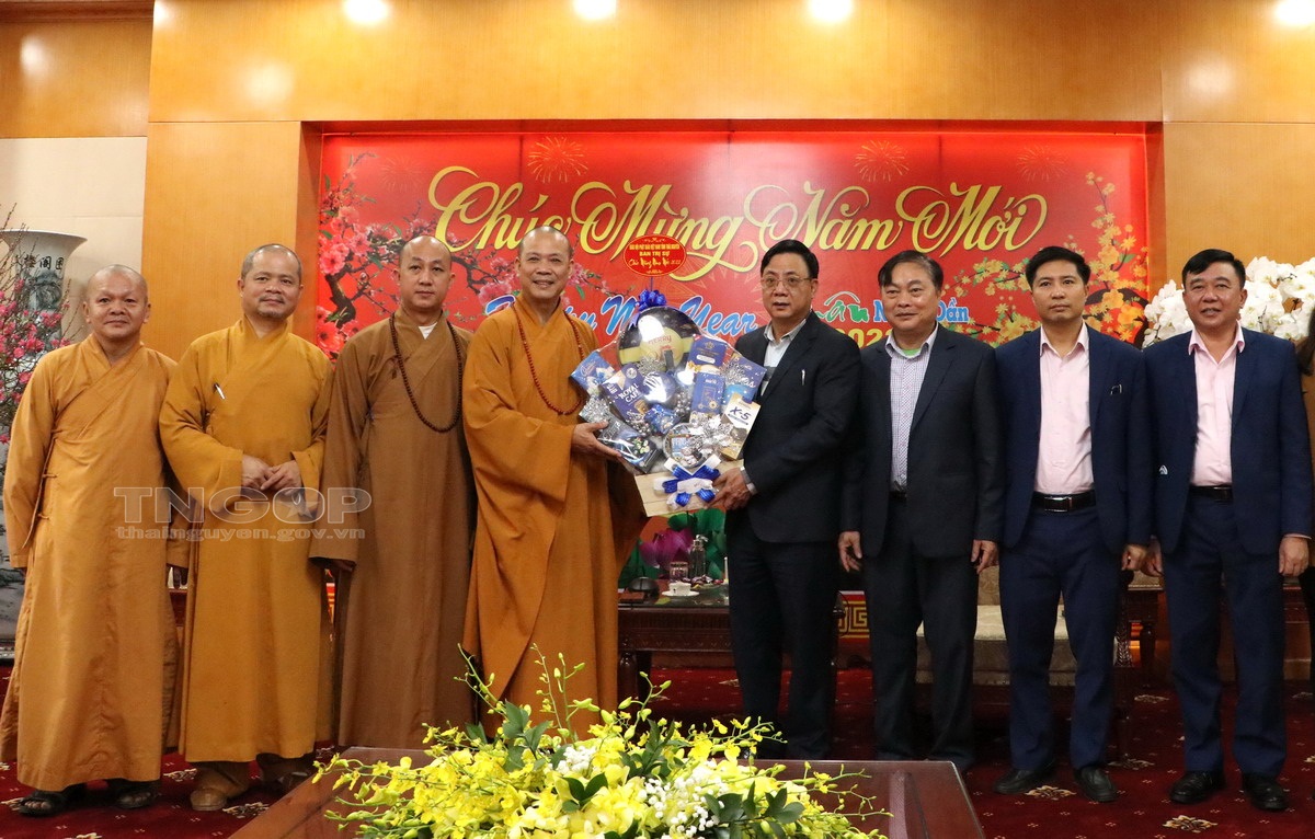 Đại diện Ban Trị sự Giáo hội Phật giáo Việt Nam tỉnh Thái Nguyên đã gửi lời cảm ơn sâu sắc đến UBND tỉnh và các cơ quan, đoàn thể đã giúp đỡ, tạo điều kiện thuận lợi trong hoạt động Giáo hội Phật giáo thời gian qua. Qua đó, giúp cho Giáo hội Phật giáo Việt Nam tỉnh Thái Nguyên hoạt động có hiệu quả trong thực hiện nhiệm vụ, góp phần cùng với tỉnh trong phòng, chống dịch bệnh COVID-19, an sinh xã hội, chăm lo đời sống cho bà con nghèo vùng sâu, vùng xa… Nhân dịp năm mới, Ban Trị sự Giáo hội Phật giáo Việt Nam tỉnh Thái Nguyên gửi lời chúc mừng tốt đẹp nhất đến các đồng chí lãnh đạo tỉnh nói riêng và Nhân dân các dân tộc tỉnh Thái Nguyên nói chung đón tết thanh bình, an lạc.