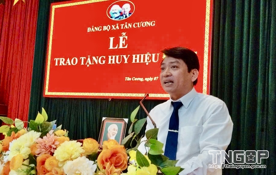 Phát biểu tại buổi Lễ, đồng chí Đinh Công Ích, Phó Bí thư Đảng ủy xã Tân Cương chúc mừng và bày tỏ lòng trân trọng đối với những đóng góp, cống hiến của các đảng viên được nhận Huy hiệu Đảng. Đây không chỉ là niềm vinh dự của mỗi cá nhân mà còn là niềm tự hào của toàn thể cán bộ, đảng viên và Nhân dân xã Tân Cương. Lãnh đạo xã Tân Cương đề nghị toàn Đảng bộ xã tiếp tục phát huy truyền thống đoàn kết, sức mạnh toàn dân, nêu cao tinh thần trách nhiệm, sáng tạo, phấn đấu hoàn thành thắng lợi các mục tiêu Nghị quyết Đại hội đại biểu Đảng bộ xã lần thứ I, nhiệm kỳ 2025 - 2030 đã đề ra, góp phần xây dựng xã Tân Cương ngày càng giàu đẹp, văn minh.