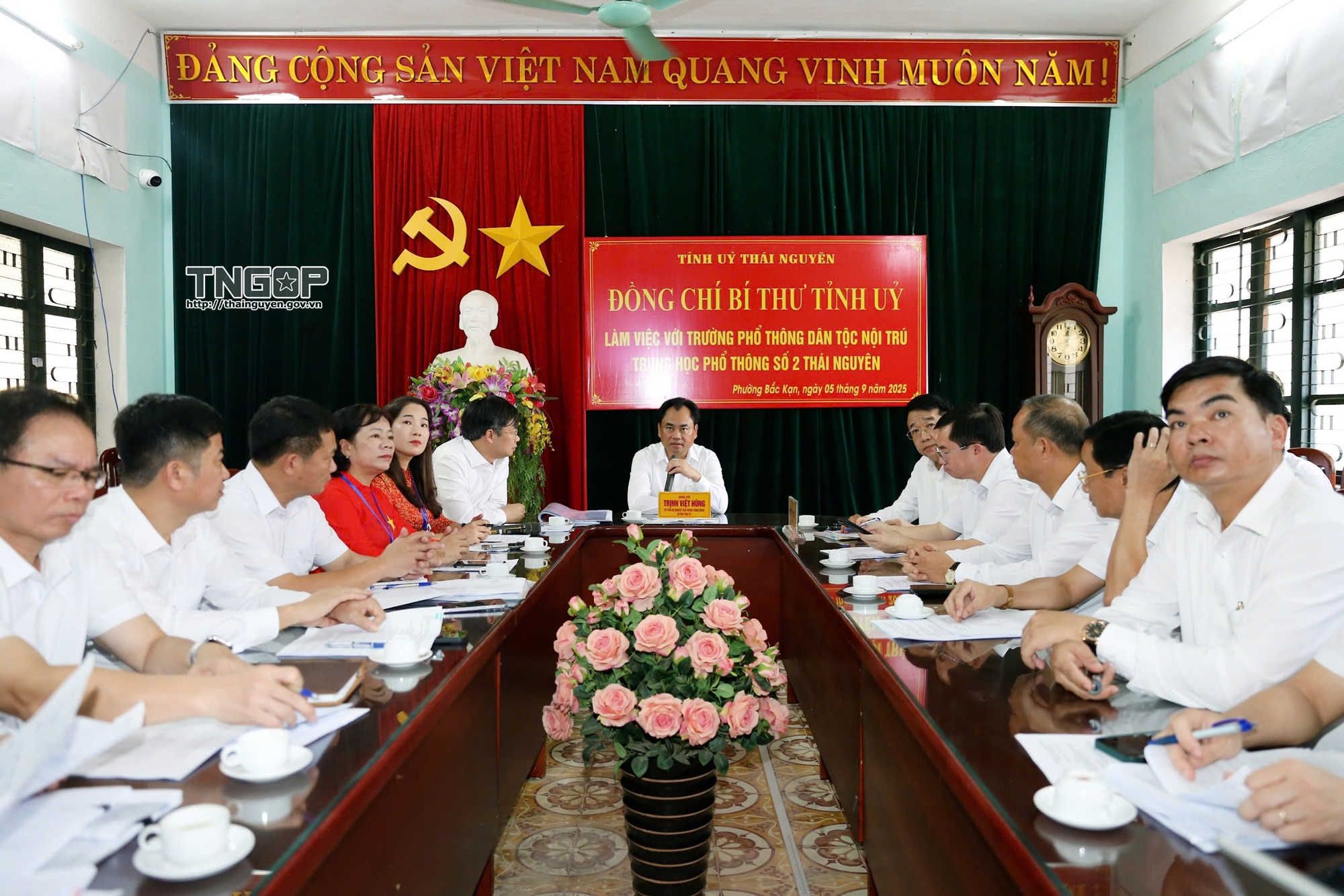 Đồng chí Bí thư Tỉnh ủy Trịnh Việt Hùng phát biểu chỉ đạo tại Chương trình làm việc, mong muốn sau nâng cấp, mở rộng, Trường PTDT nội trú THPT số 2 Thái Nguyên phải trở thành ngôi trường điểm, là niềm tự hào trong đào tạo con em đồng bào dân tộc thiểu số của tỉnh Thái Nguyên nói riêng và cả nước nói chung