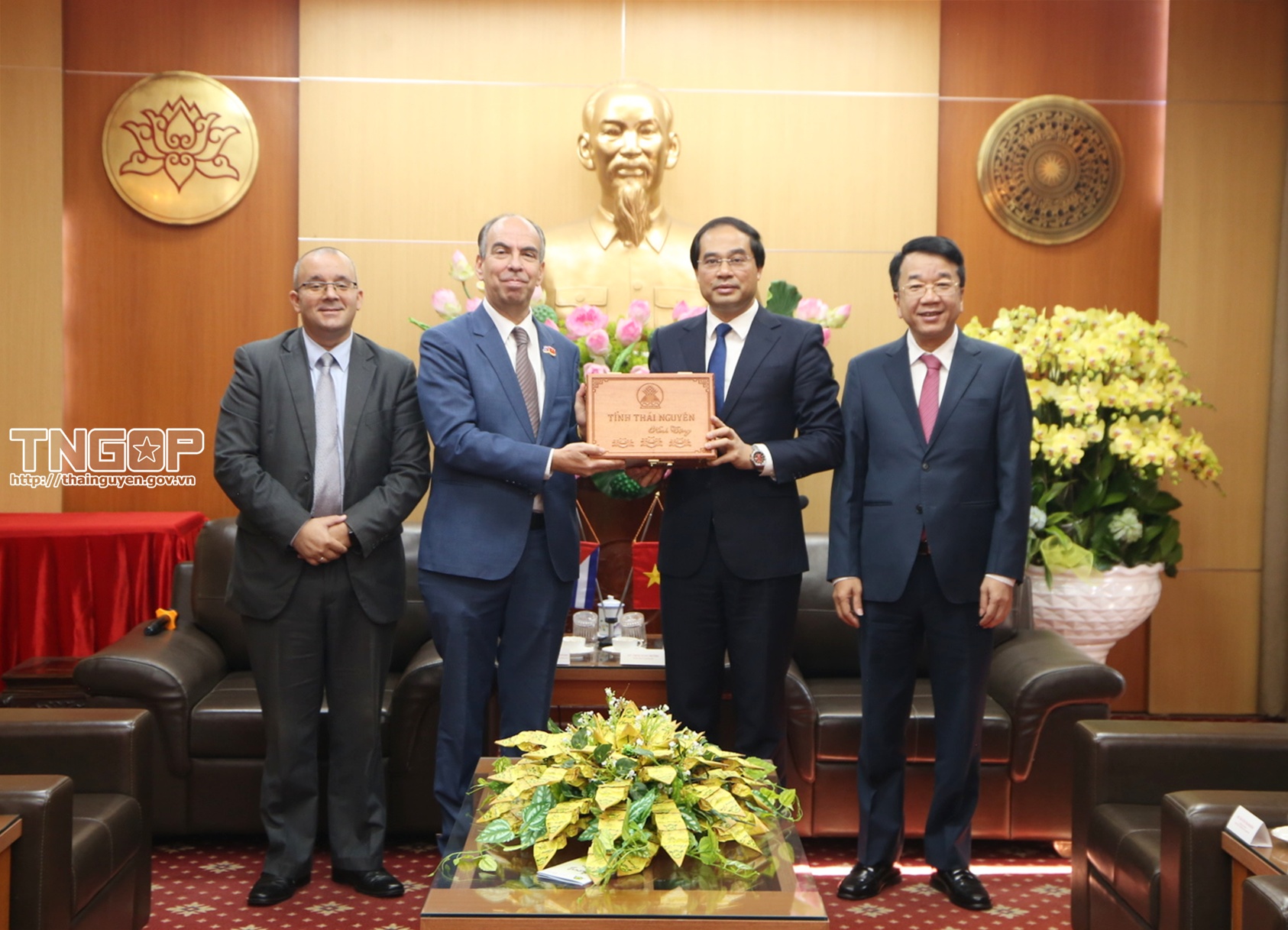 Sáng 27/11, đồng chí Trịnh Xuân Trường, Bí thư Tỉnh ủy Thái Nguyên tiếp và làm việc với Đoàn công tác Đại sứ quán nước Cộng hòa Cuba tại Việt Nam do Ngài Rogelio Polanco Fuentes, Đại sứ đặc mệnh toàn quyền nước Cộng hòa Cuba tại Việt Nam làm Trưởng Đoàn đến thăm, chào xã giao và trao đổi cơ hội hợp tác đầu tư tại tỉnh. Tham dự buổi tiếp có đồng chí Nguyễn Thanh Bình, Phó Bí thư Tỉnh ủy, Phó Chủ tịch Thường trực UBND tỉnh cùng lãnh đạo một số sở, ngành liên quan.