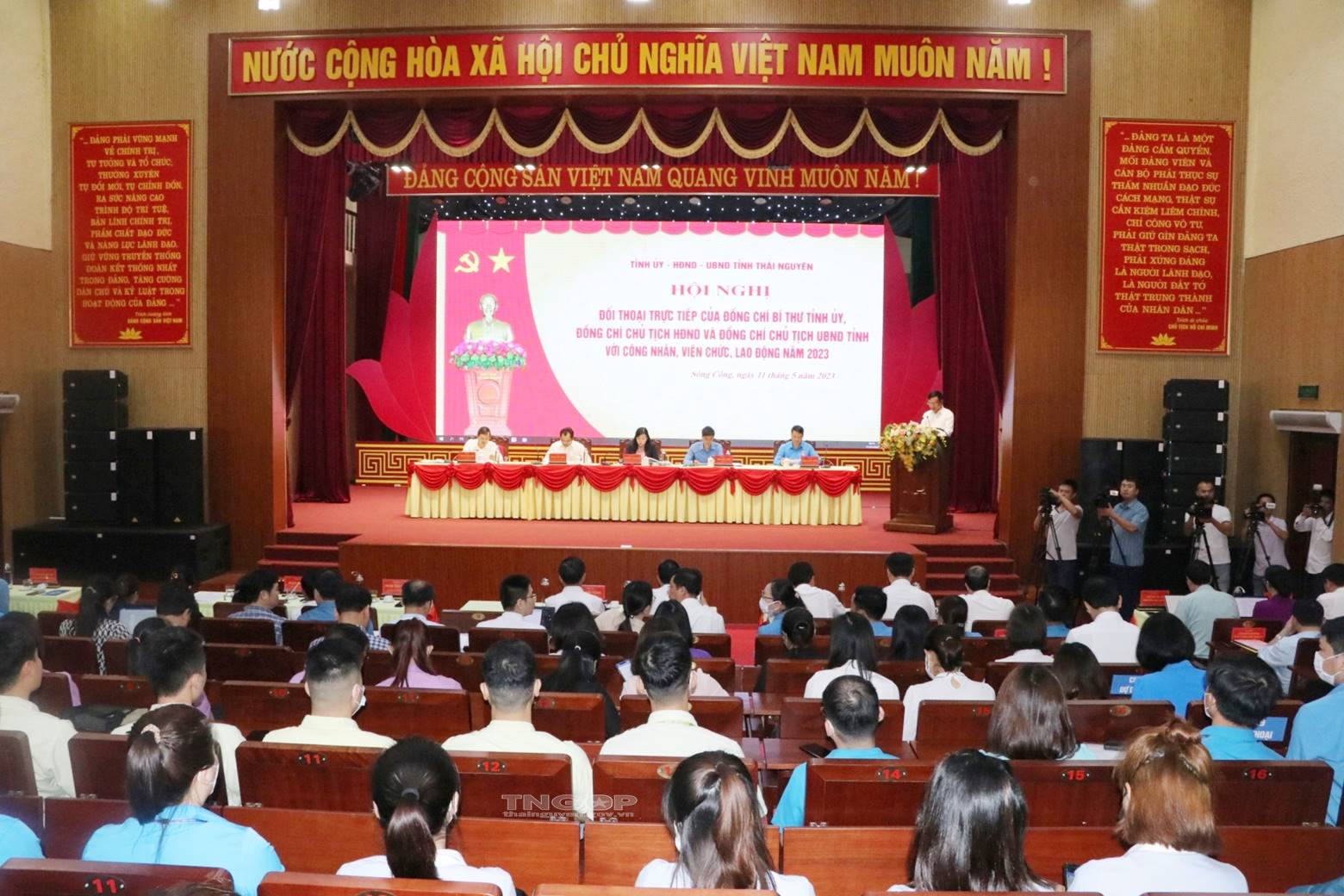 Dân chủ, cởi mở, thẳng thắn và trách nhiệm - Đó là không khí Hội nghị đối thoại trực tiếp giữa các đồng chí Nguyễn Thanh Hải, Ủy viên BCH Trung ương Đảng, Bí thư Tỉnh ủy, Trưởng Đoàn ĐBQH tỉnh; Trịnh Việt Hùng, Ủy viên dự khuyết BCH Trung ương Đảng, Phó Bí thư Tỉnh ủy, Chủ tịch UBND tỉnh; Phạm Hoàng Sơn, Phó Bí thư Thường trực Tỉnh ủy, Chủ tịch HĐND tỉnh với 350 công nhân, viên chức, lao động (CNVC,LĐ) trên địa bàn tỉnh diễn ra sáng nay (11/5) tại TP. Sông Công.