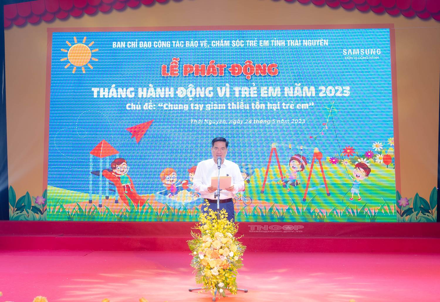 Ngày 24/5, tại Rạp Măng non Nhà thiếu nhi Thái Nguyên, Ban Chỉ đạo công tác bảo vệ chăm sóc trẻ em tỉnh Thái Nguyên tổ chức Lễ phát động Tháng hành động vì trẻ em năm 2023 với chủ đề “Chung tay giảm thiểu tổn hại trẻ em”. Đồng chí Lê Quang Tiến, Phó Chủ tịch UBND tỉnh, Trưởng Ban Chỉ đạo công tác bảo vệ chăm sóc trẻ em tỉnh dự và chỉ đạo Lễ phát động.