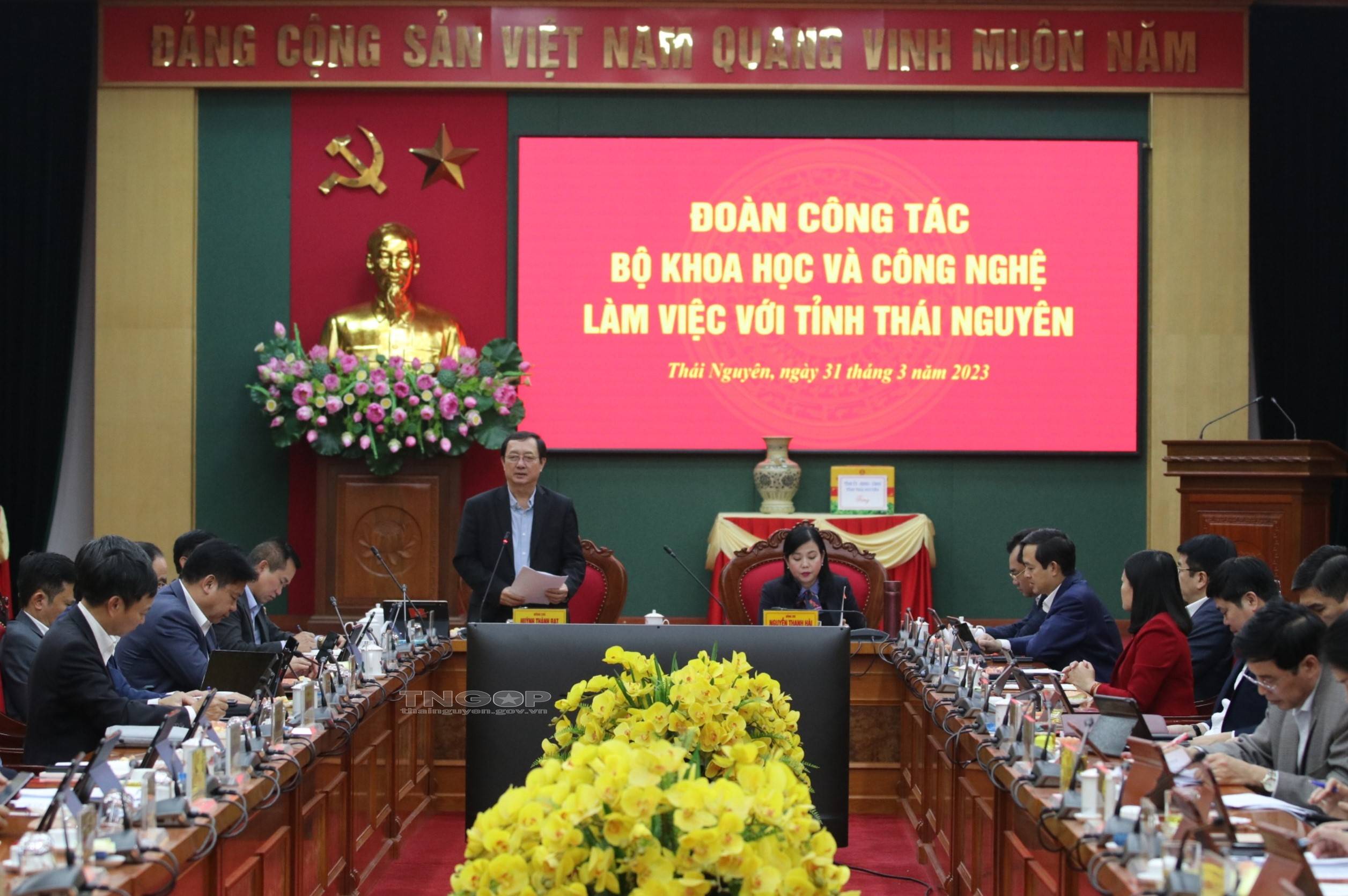 Dựa vào điều kiện tự nhiên, xã hội của tỉnh, đưa khoa học và công nghệ vào các lĩnh vực để tạo tăng trưởng nhanh và bền vững, giúp Thái Nguyên luôn “bình yên, hạnh phúc, sung túc và phát triển” - Đây là nhấn mạnh của đồng chí Nguyễn Thanh Hải, Ủy viên BCH Trung ương Đảng, Bí thư Tỉnh ủy, Trưởng Đoàn ĐBQH tỉnh tại buổi làm việc với Đoàn công tác của Bộ Khoa học và Công nghệ (KH&CN) do đồng chí Huỳnh Thành Đạt, Ủy viên BCH Trung ương Đảng, Bộ trưởng làm Trưởng Đoàn, diễn ra vào chiều nay (31/3) tại Tỉnh ủy Thái Nguyên.