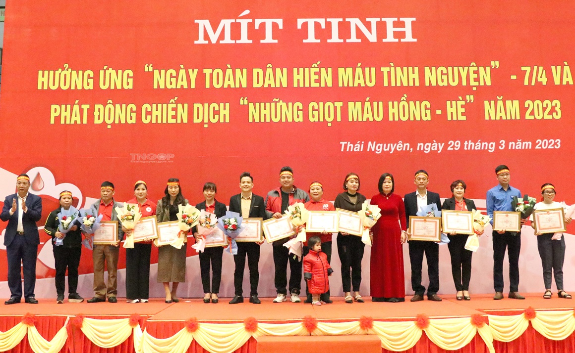 Sáng ngày 29/3, Ban Chỉ đạo vận động hiến máu tình nguyện (HMTN) tỉnh Thái Nguyên tổ chức Chương trình Mít tinh hưởng ứng “Ngày toàn dân HMTN” - 7/4 và phát động Chiến dịch “Những giọt máu hồng - hè” năm 2023.