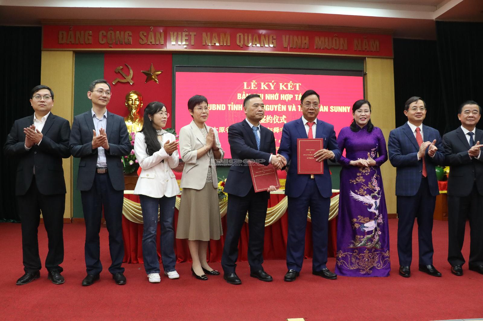 Ngày 7/3, tại Trụ sở Tỉnh ủy đã diễn ra Lễ ký kết Biên bản ghi nhớ hợp tác giữa UBND tỉnh Thái Nguyên và Tập đoàn Sunny.