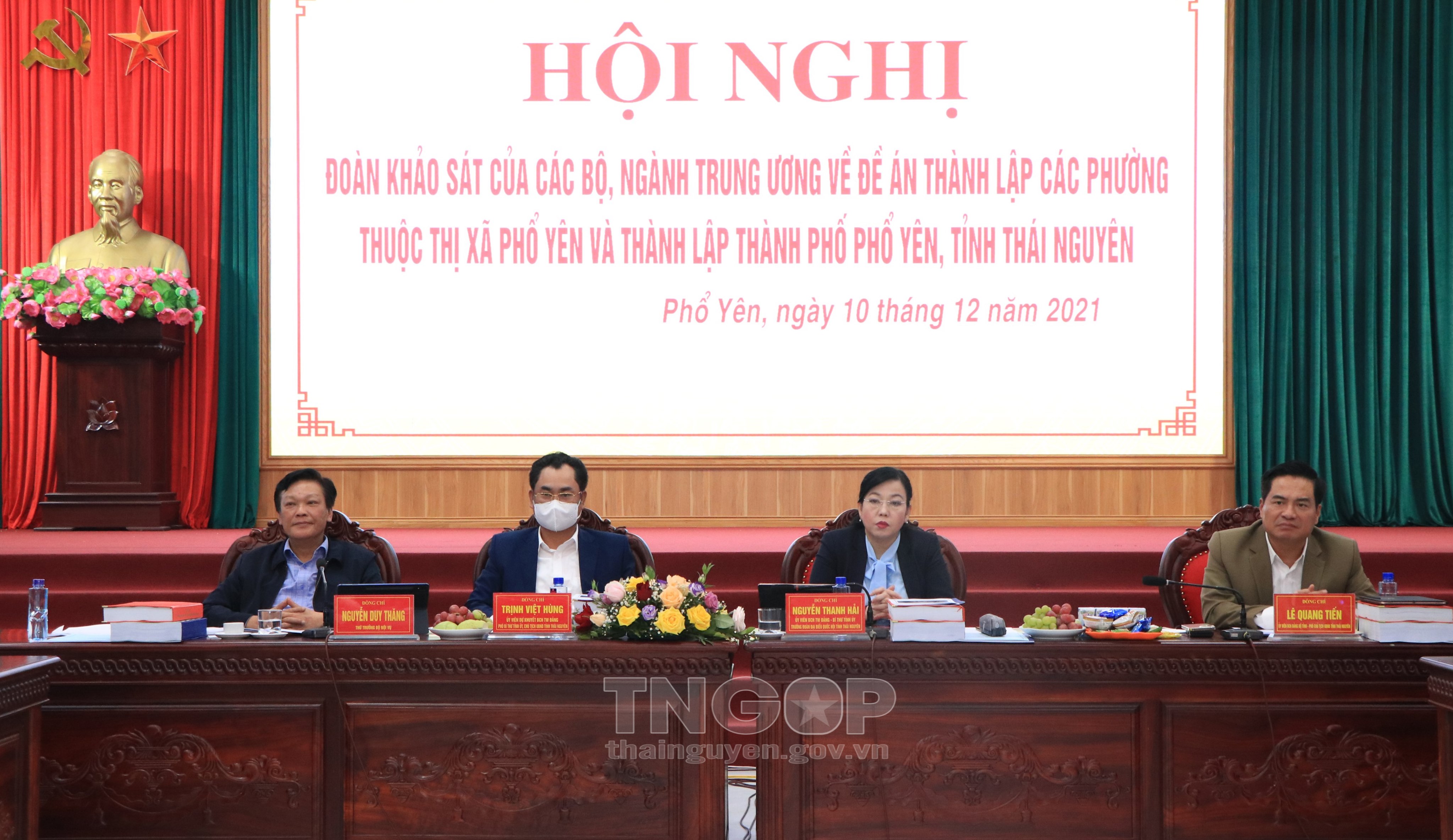 Chiều ngày 10/12, Đoàn công tác liên ngành của Bộ Nội vụ do đồng chí Nguyễn Duy Thăng, Thứ trưởng Bộ Nội vụ làm Trưởng đoàn đã có buổi làm việc với thị xã Phổ Yên để khảo sát hiện trạng phát triển của 9 xã dự kiến thành lập phường và thành lập thành phố Phổ Yên thuộc tỉnh Thái Nguyên.