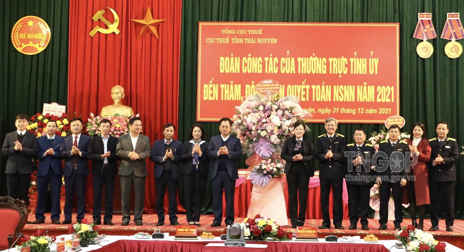 Ngày 31/12, Đoàn công tác của tỉnh do đồng chí Nguyễn Thanh Hải, Ủy viên BCH Trung ương Đảng, Bí thư Tỉnh ủy, Trưởng đoàn Đại biểu Quốc hội tỉnh làm Trưởng Đoàn đã có buổi gặp mặt động viên đại diện lãnh đạo và cán bộ công chức ngành Tài chính, Thuế, Kho bạc Nhà nước Thái Nguyên tại Cục Thuế tỉnh. Tham gia Đoàn có đồng chí Trịnh Việt Hùng, Ủy viên dự khuyết BCH Trung ương Đảng, Phó Bí thư Tỉnh ủy, Chủ tịch UBND tỉnh; đồng chí Lê Quang Tiến, Phó Chủ tịch UBND tỉnh và các sở, ban, ngành liên quan. Buổi gặp mặt được kết nối trực tuyến với các Chi cục Thuế khu vực thuộc Cục Thuế tỉnh.