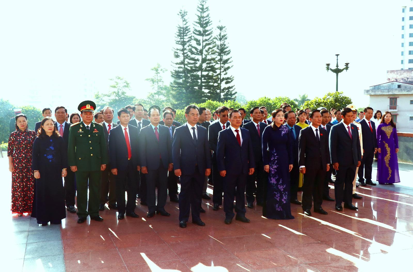 Ban Chấp hành Đảng bộ tỉnh khóa XIX, nhiệm kỳ 2015 - 2020 và các Trưởng đoàn đại biểu dâng hương tại Đài tưởng niệm các Anh hùng liệt sĩ tỉnh
