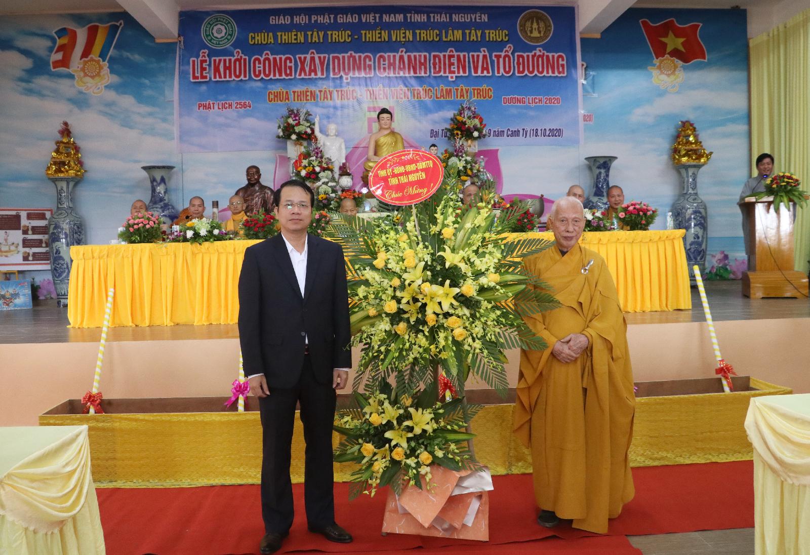 Sáng 18/10, tại Chùa Thiên Tây Trúc - Thiền viện Trúc Lâm Tây Trúc (xóm Hòa Bình, xã Quân Chu, huyện Đại Từ) tổ chức Lễ khởi công xây dựng Chánh điện và Tổ đường Chùa Thiên Tây Trúc. Dự buổi lễ có đồng chí Dương Văn Lượng, Phó Chủ tịch UBND tỉnh; lãnh đạo huyện Đại Từ, cùng đông đảo tăng, ni, phật tử và Nhân dân.