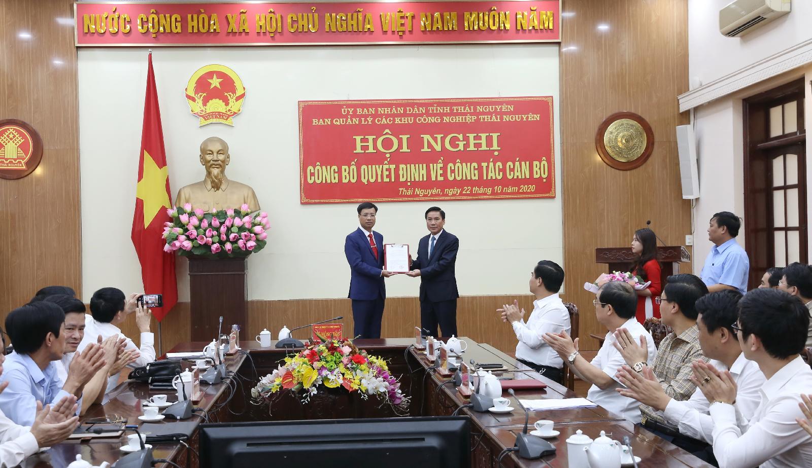 Sáng ngày 22/10, tại UBND tỉnh, đồng chí Vũ Hồng Bắc, Chủ tịch UBND tỉnh đã dự và trao Quyết định bổ nhiệm Trưởng Ban Quản lý các Khu công nghiệp Thái Nguyên. Dự Hội nghị có đồng chí Lê Quang Tiến, Phó Chủ tịch UBND tỉnh; đại diện lãnh đạo một số sở, ngành, đơn vị liên quan.