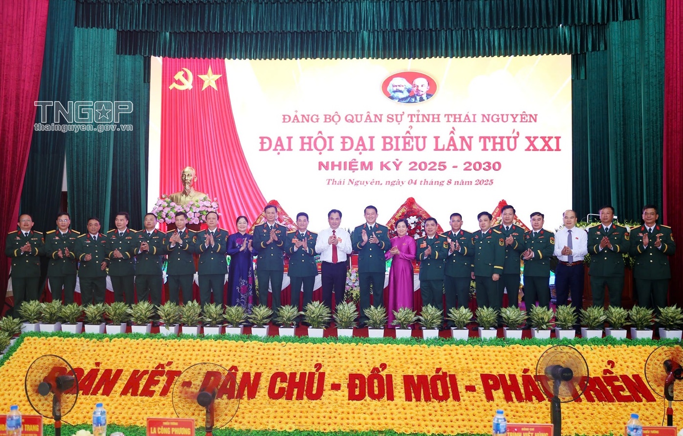 Chiều 4/8, Đảng bộ Quân sự tỉnh Thái Nguyên tổ chức Đại hội đại biểu lần thứ XXI, nhiệm kỳ 2025 - 2030. Dự Đại hội có đồng chí Trịnh Việt Hùng, Ủy viên dự khuyết Ban Chấp hành Trung ương Đảng, Bí thư Tỉnh ủy, Bí thư Đảng ủy Quân sự tỉnh; Thiếu tướng La Công Phương, Bí thư Đảng ủy, Chính ủy Quân khu 1, các đồng chí Ủy viên Ban Thường vụ Tỉnh ủy cùng 200 đại biểu là những đảng viên ưu tú, tiêu biểu đại diện cho Đảng bộ Quân sự tỉnh.