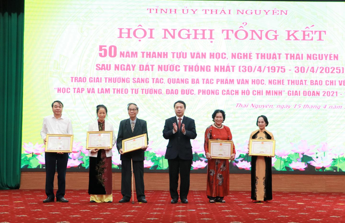 Sáng 15/4, Tỉnh ủy Thái Nguyên tổ chức Hội nghị tổng kết 50 năm thành tựu văn học, nghệ thuật Thái Nguyên sau ngày đất nước thống nhất (30/4/1975 - 30/4/2025); trao giải thưởng sáng tác, quảng bá tác phẩm văn học nghệ thuật, báo chí về chủ đề “Học tập và làm theo tư tưởng, phong cách Hồ Chí Minh” giai đoạn 2021 - 2025 (đợt 2).