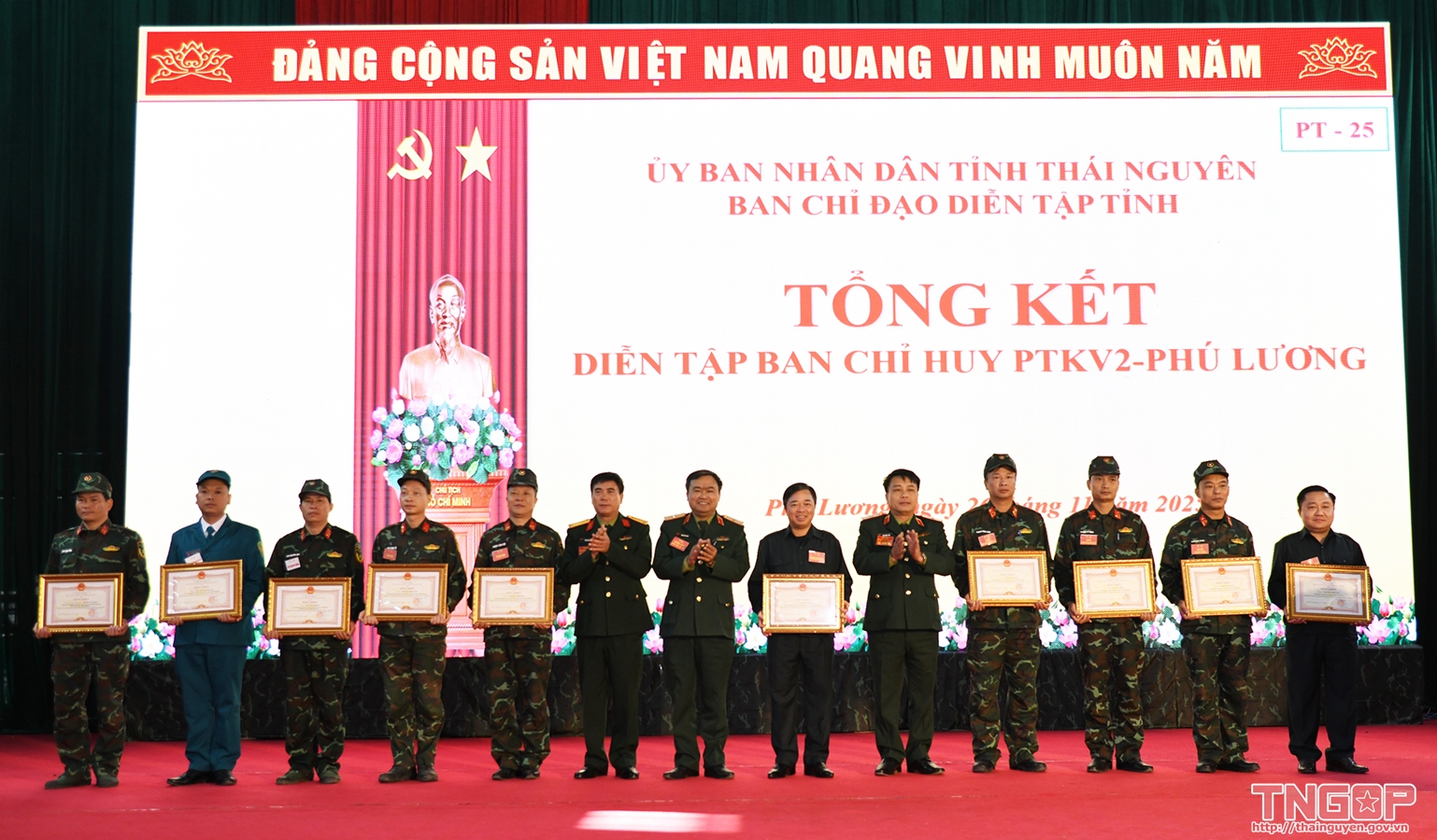 Sau 2 ngày tổ chức thực hành diễn tập, sáng 26/11, Ban Chỉ đạo diễn tập tỉnh Thái Nguyên đã tổ chức tổng kết nội dung diễn tập Ban Chỉ huy phòng thủ khu vực 2 - Phú Lương năm 2025. Dự và chỉ đạo buổi tổng kết có đồng chí Bùi Văn Lương, Ủy viên Ban Thường vụ Tỉnh ủy, Phó Chủ tịch UBND tỉnh, Trưởng Ban Chỉ đạo diễn tập tỉnh Thái Nguyên.