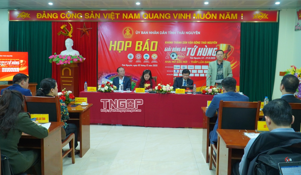 Ngày 2/12, Sở Văn hóa, Thể thao và Du lịch tổ chức Họp báo khánh thành Sân vận động tỉnh và tổ chức Giải bóng đá Tứ hùng - Thái Nguyên năm 2025. Tham dự Họp báo có đồng chí Đỗ Thị Minh Hoa, Ủy viên Ban Thường vụ, Trưởng Ban Tuyên giáo và Dân vận Tỉnh ủy; lãnh đạo các sở, ngành của tỉnh cùng các cơ quan thông tấn, báo chí Trung ương, địa phương và phóng viên thường trú tại Thái Nguyên.