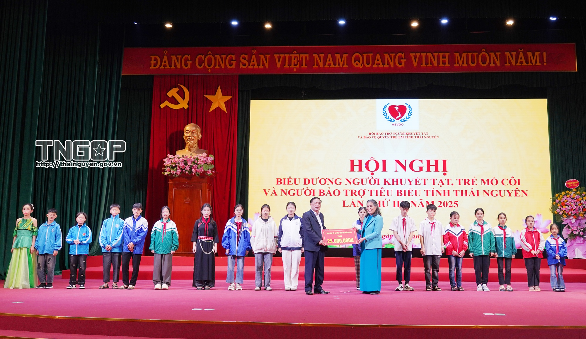 Tại Hội nghị, Hội Bảo vệ quyền trẻ em Việt Nam trao quà cho 25 trẻ mồ côi; 01 học sinh được trao học bổng; 4 tập thể và 6 cá nhân được Chủ tịch UBND tỉnh tặng Bằng khen; 3 tập thể, 4 cá nhân có thành tích xuất sắc trong hoạt động bảo trợ người khuyết tật và trẻ mồ côi được nhận Bằng khen của Hội Bảo trợ người khuyết tật và trẻ em mồ côi Việt Nam; 6 tập thể là nhà bảo trợ tiêu biểu và 74 cá nhân là người khuyết tật, trẻ em có hoàn cảnh khó khăn, có thành tích tiêu biểu trong học tập và lao động giai đoạn 2021 - 2025 nhận Giấy khen của Hội Bảo trợ người khuyết tật và bảo vệ quyền trẻ em tỉnh Thái Nguyên.