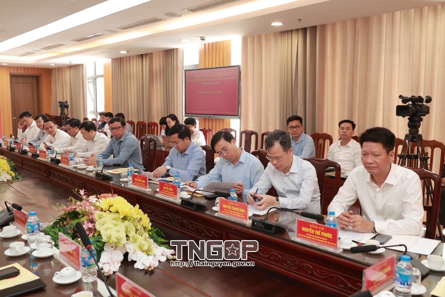 Thông tin tới Đoàn công tác, đại diện Ban Quản lý các khu công nghiệp (KCN) tỉnh Thái Nguyên chia sẻ: Sau hợp nhất, trên địa bàn tỉnh Thái Nguyên có 19 KCN và 1 khu công nghệ thông tin tập trung đã được phê duyệt, với tổng diện tích quy hoạch là trên 6.400 ha. Đến nay tỉnh đã thành lập 12 KCN, trong đó, đã có 6 KCN đi vào hoạt động. Các KCN đi vào hoạt động cơ bản được đầu tư cơ sở hạ tầng thiết yếu, đáp ứng nhu cầu của các nhà đầu tư thứ cấp. Trong các KCN trên địa bàn tỉnh Thái Nguyên có 353 dự án được cấp giấy chứng nhận đăng ký đầu tư còn hiệu lực, trong đó có 191 dự án FDI với tổng số vốn đăng ký đầu tư 11.132 triệu USD và 162 dự án DDI với tổng vốn đăng ký đầu tư 47.500 tỷ đồng.