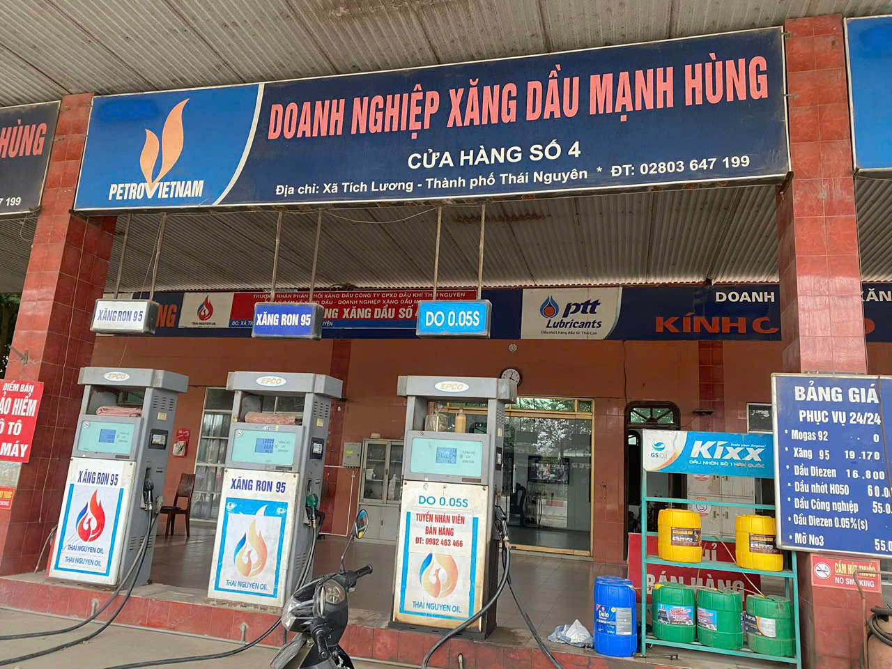 Cửa hàng bán lẻ xăng dầu Mạnh Hùng đang hoạt động phục vụ người dân