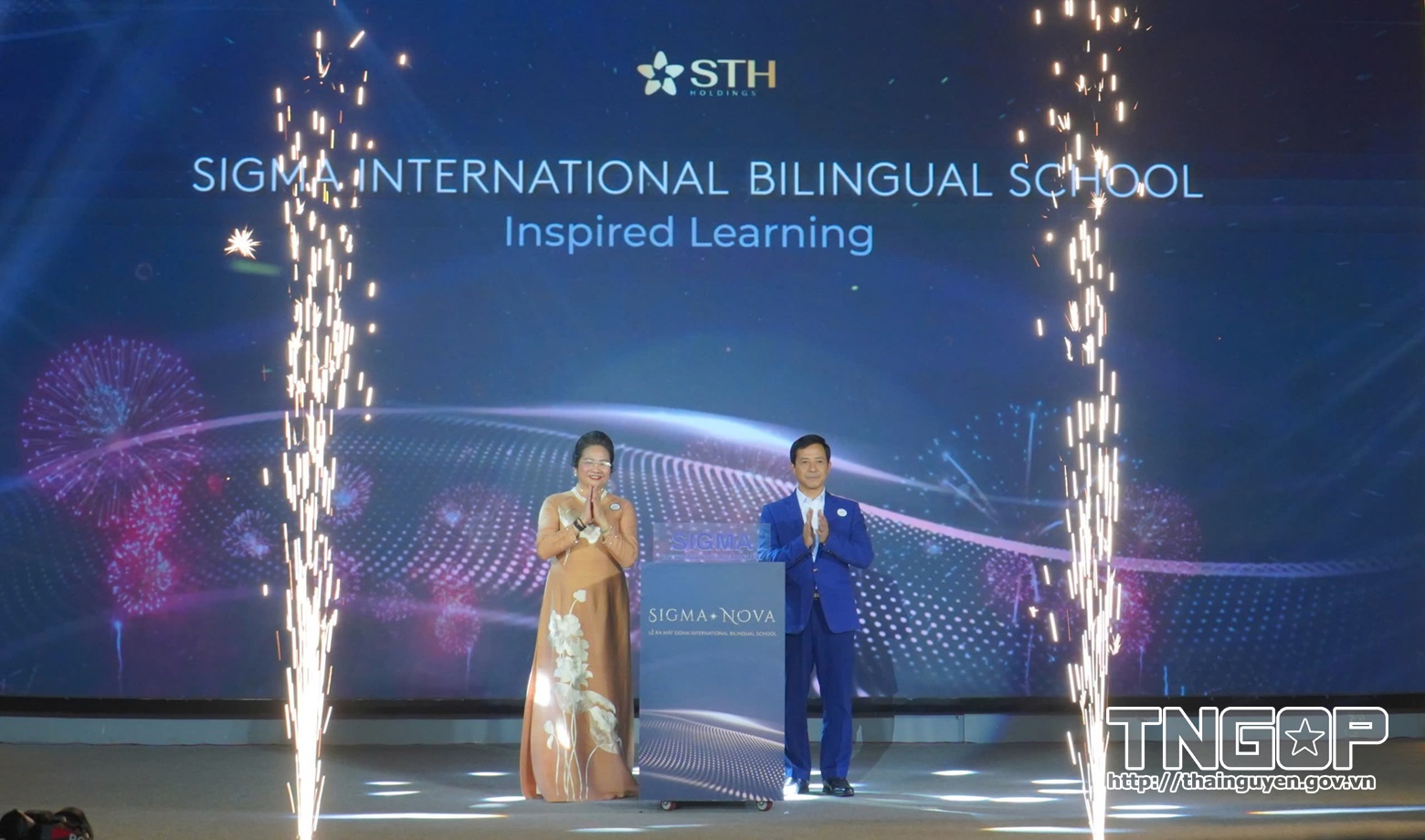 Tiến sĩ Nguyễn Thị Vinh, Chủ tịch HĐQT Công ty CP STH Holdings và Tiến sĩ Nguyễn Văn Hưng, Phó Giám đốc Sở Giáo dục và Đào tạo thực hiện nghi thức ra mắt Trường song ngữ quốc tế Sigma