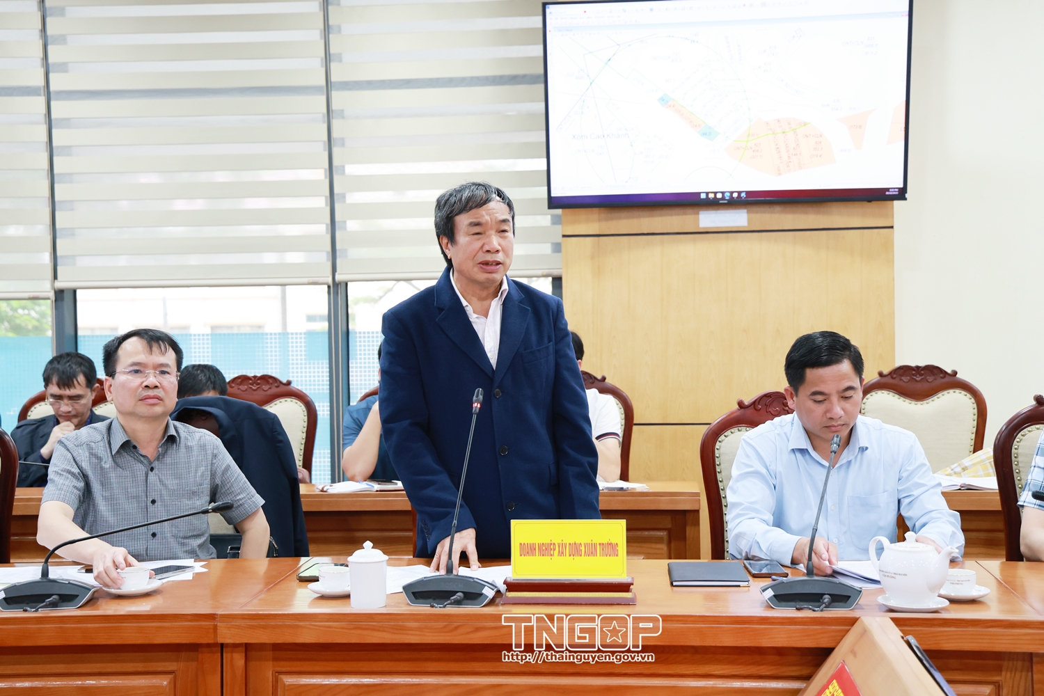 Đại diện Doanh nghiệp Xây dựng Xuân Trường - chủ đầu tư Dự án trao đổi về một số khó khăn, vướng mắc