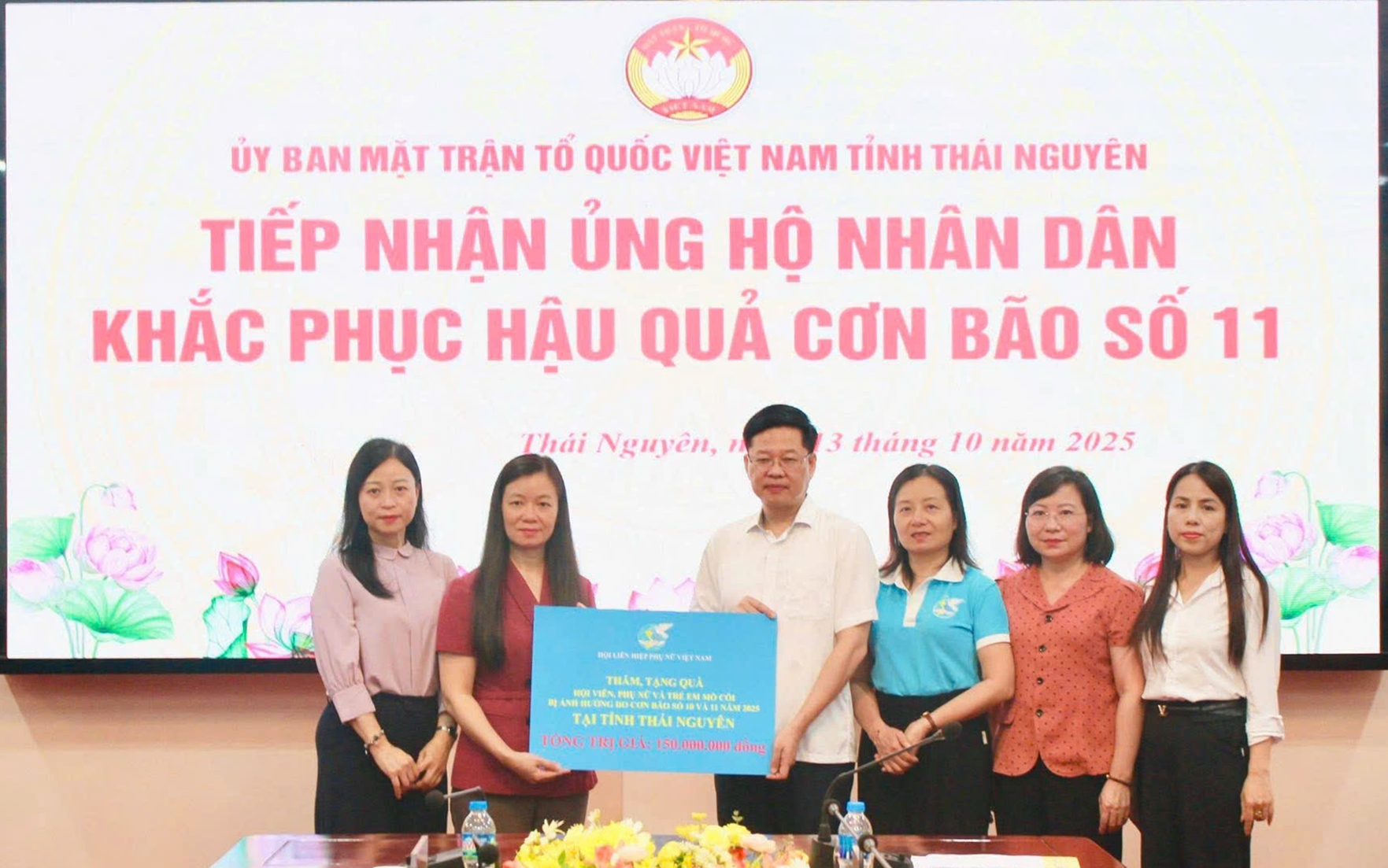 Hội Liên hiệp phụ nữ Việt Nam tặng 150 triệu đồng hỗ trợ đồng bào tỉnh Thái Nguyên khắc phục hậu quả bão số 10 và số 11
