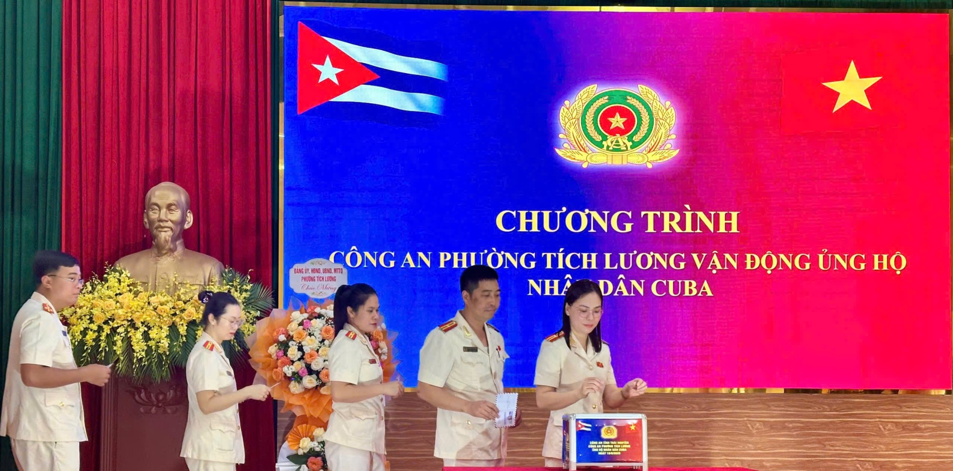 Chương trình vận động ủng hộ nhận được sự hưởng ứng của đông đảo các cơ quan, đơn vị, các tầng lớp Nhân dân (Trong ảnh: Công an phường Tích Lương tham gia ủng hộ Nhân dân Cuba)