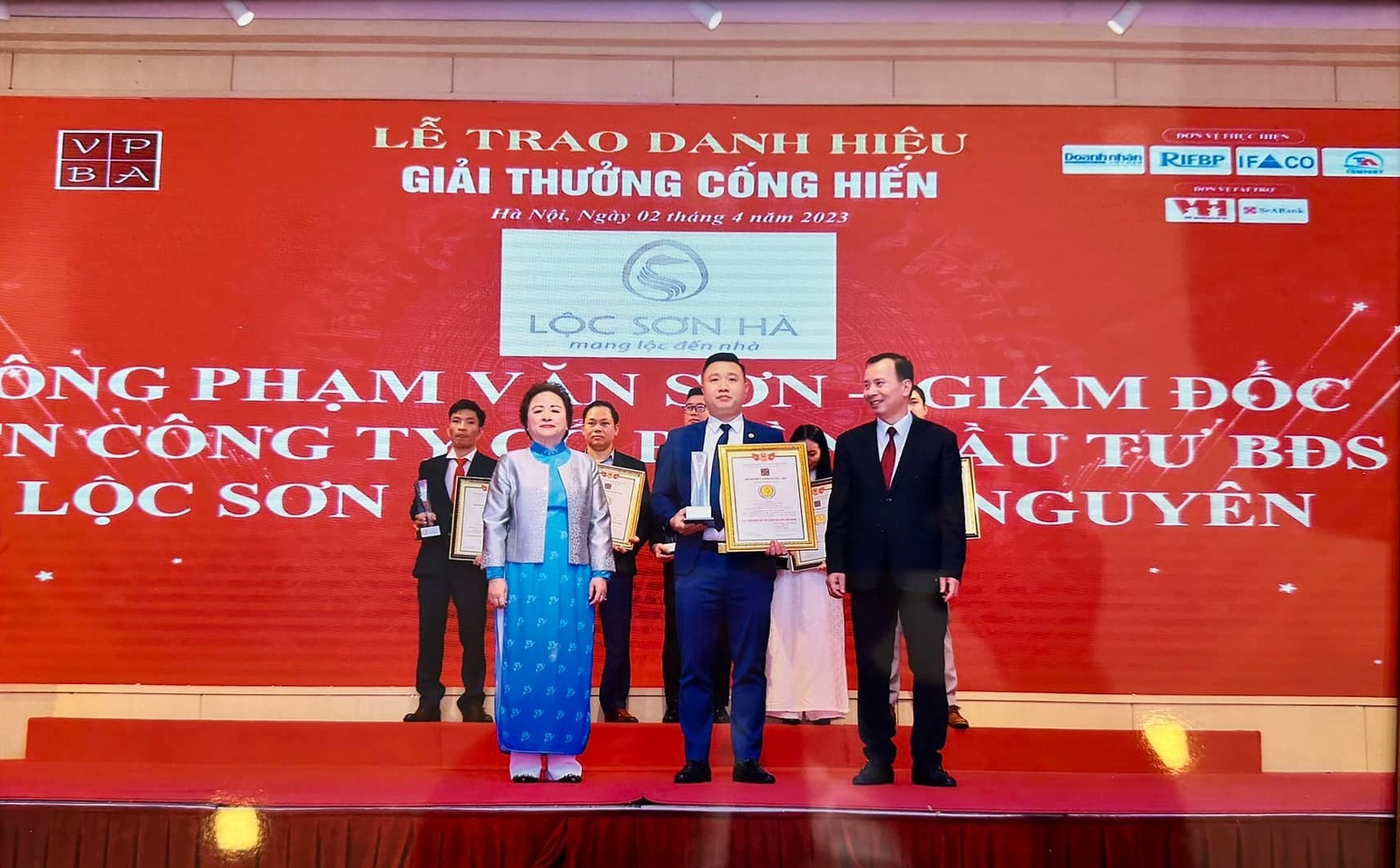 Ông Phạm Văn Sơn, Chủ tịch Hội đồng quản trị Công ty cổ phần Bất động sản Lộc Sơn Hà Land nhận Giải thưởng cống hiến năm 2023