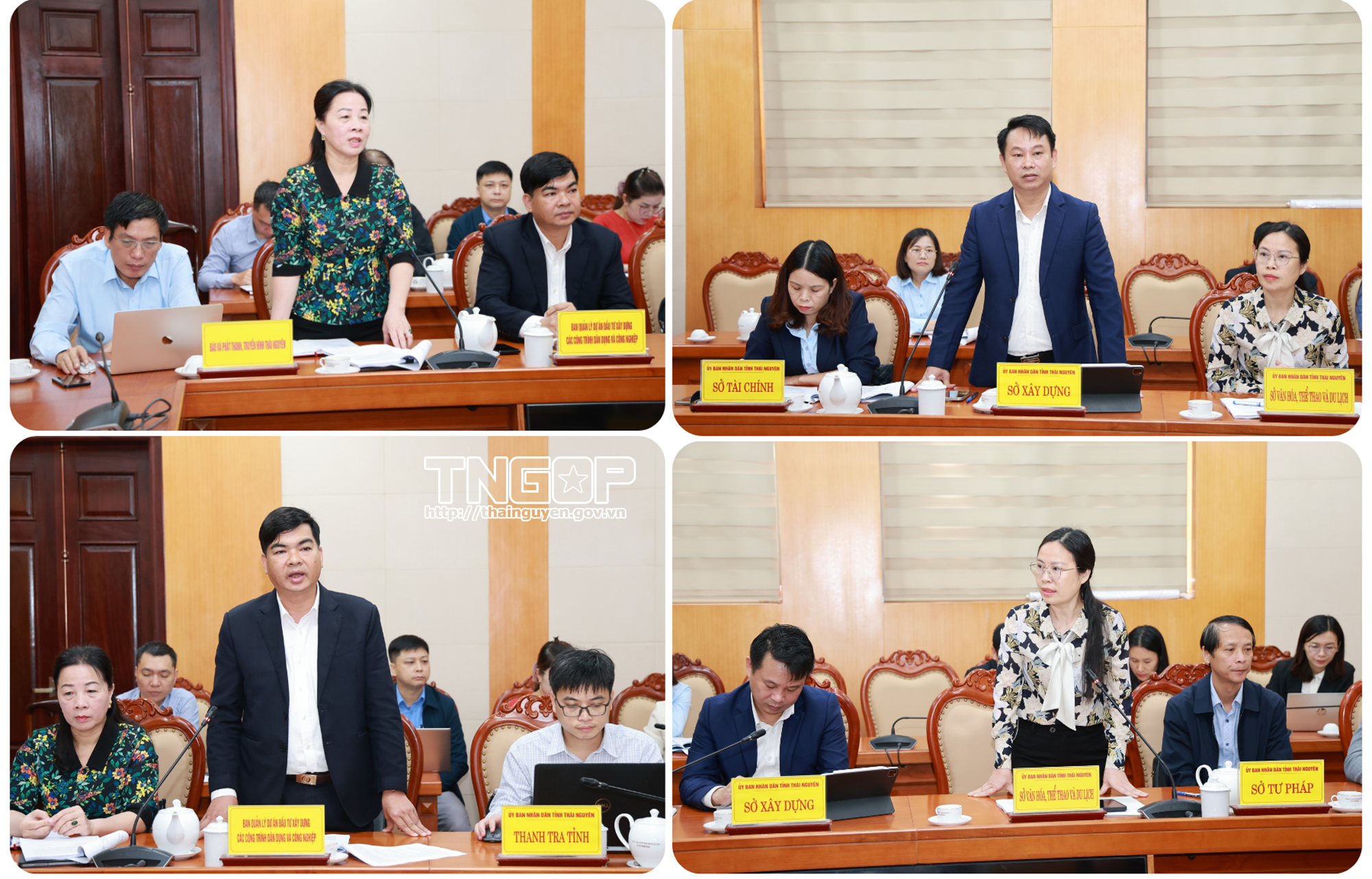 Tại cuộc họp, Ban Quản lý dự án đầu tư xây dựng các công trình dân dụng và công nghiệp tỉnh báo cáo tình hình thực hiện 3 dự án, gồm: Dự án xây dựng Kho lưu trữ chuyên dụng của tỉnh và Trụ sở làm việc Trung tâm Lưu trữ lịch sử tỉnh Thái Nguyên (phường Phan Đình Phùng); Dự án Nhà trung tâm sản xuất chương trình phát thanh, truyền hình của Đài Phát thanh - Truyền hình tỉnh (nay là Báo và Phát thanh, Truyền hình tỉnh) thuộc phường Phan Đình Phùng; Dự án Xây dựng cơ sở vật chất huấn luyện và thi đấu môn đua thuyền (Khu du lịch hồ Núi Cốc, xã Đại Phúc).