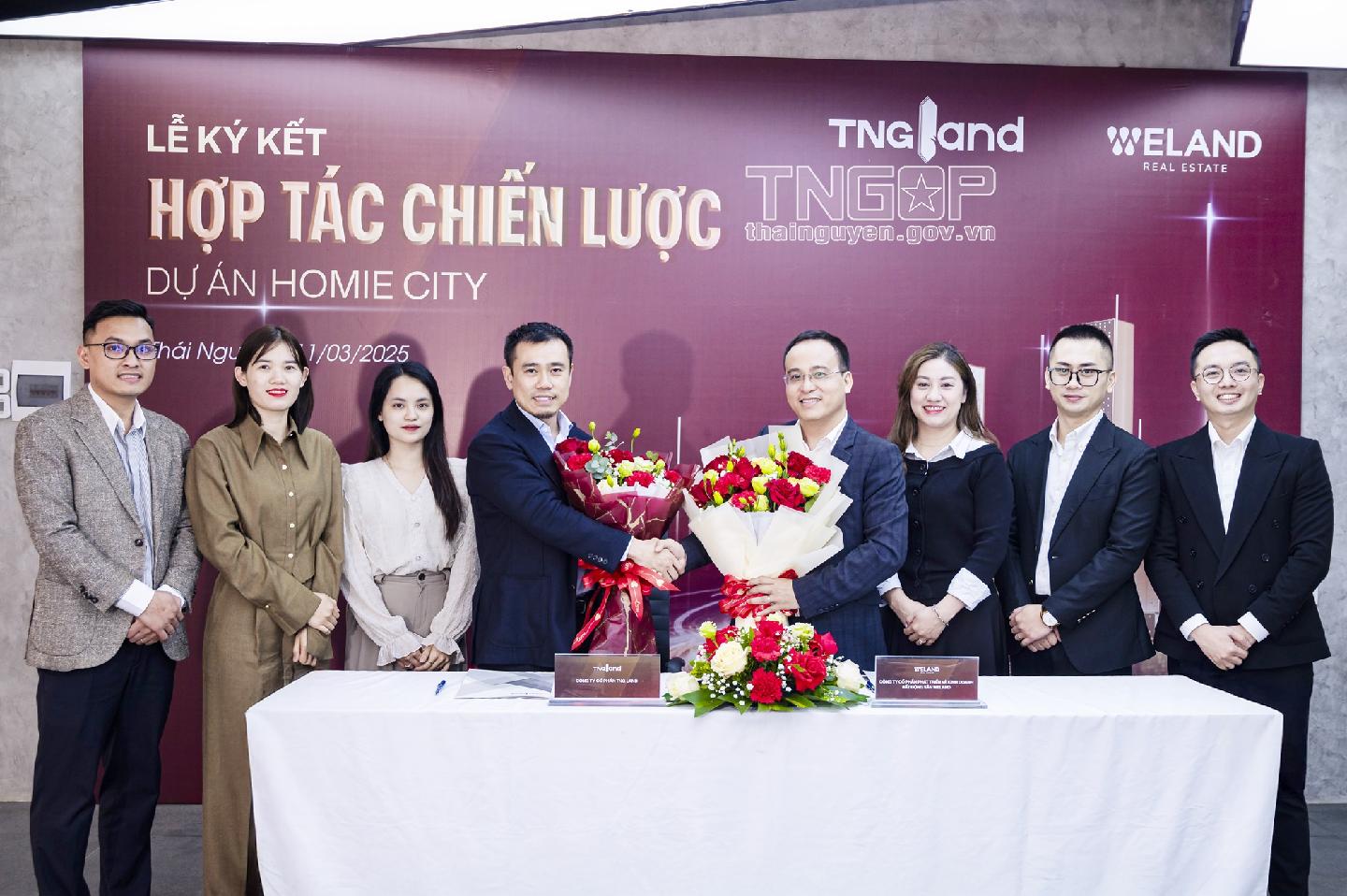 Ngày 13/3, Công ty cổ phần TNG Land (gọi tắt là TNG Land) đã tổ chức Lễ ký kết hợp tác chiến lược với đơn vị Tư vấn phát triển bất động sản WeLand (gọi tắt là WeLand) nhằm phát triển dự án Homie City - khu dân cư hiện đại tại TP. Phổ Yên, tỉnh Thái Nguyên.