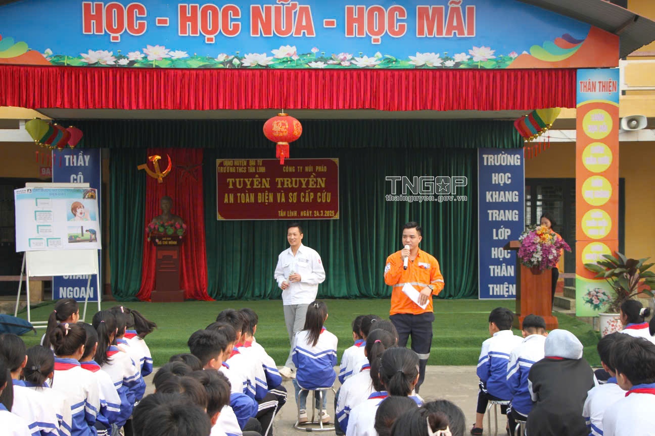Ngày 24/3, gần 400 học sinh Trường THCS Tân Linh (huyện Đại Từ) đã tham gia chương trình Tuyên truyền an toàn điện và sơ cấp cứu do Công ty Núi Pháo tổ chức.
