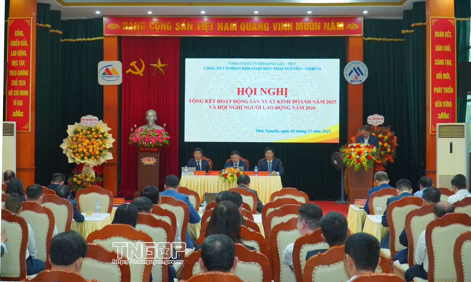 Ngày 2/12, Công ty cổ phần Kim loại màu Thái Nguyên - Vimico tổ chức Hội nghị tổng kết hoạt động sản xuất kinh doanh năm 2025 và Hội nghị người lao động năm 2026. Tham dự có lãnh đạo Tổng Công ty Khoáng sản - TKV và 100 đại biểu đại diện cho hơn 1.200 cán bộ, công nhân viên trong toàn Công ty.