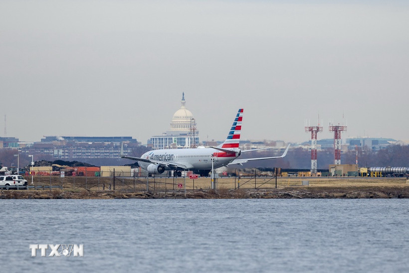 Máy bay của hãng hàng không American Airlines tại sân bay Ronald Reagan Washington, Mỹ. (Ảnh: THX/TTXVN)