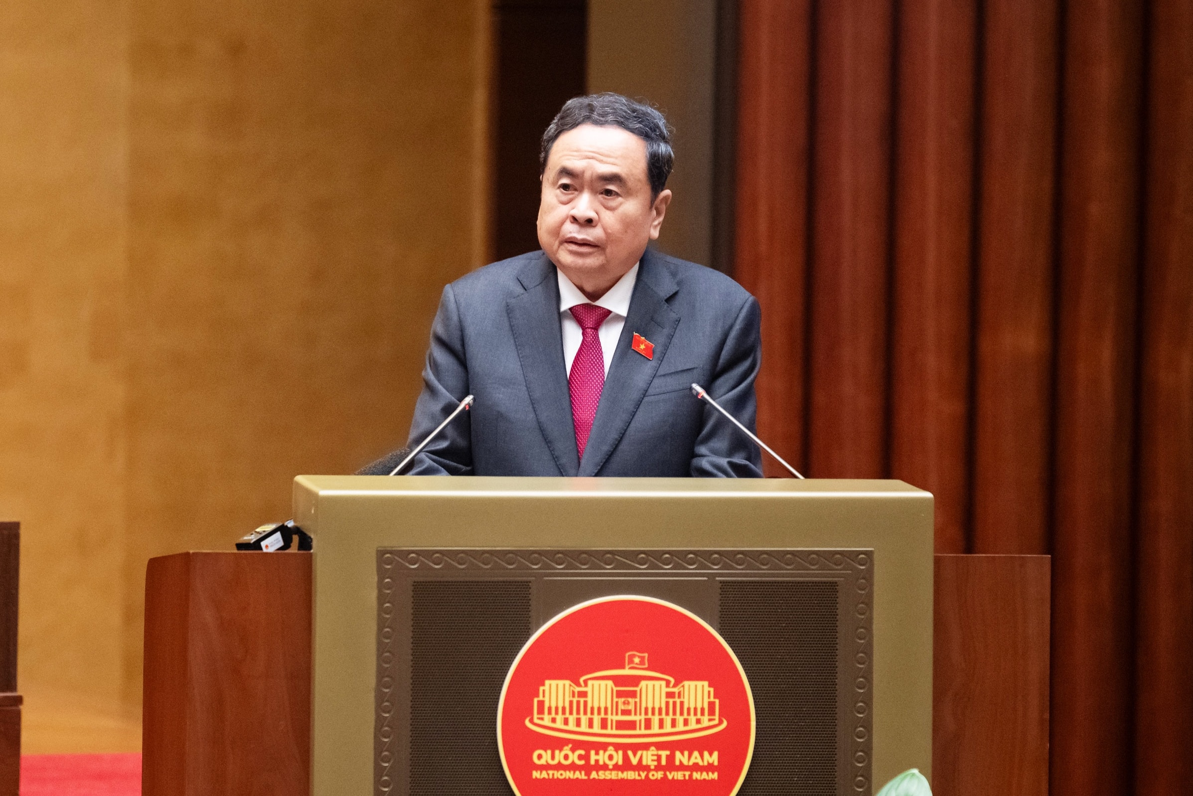 Chủ tịch Quốc hội Trần Thanh Mẫn chủ trì phiên họp sáng 10/11/2025. Ảnh: Phạm Thắng