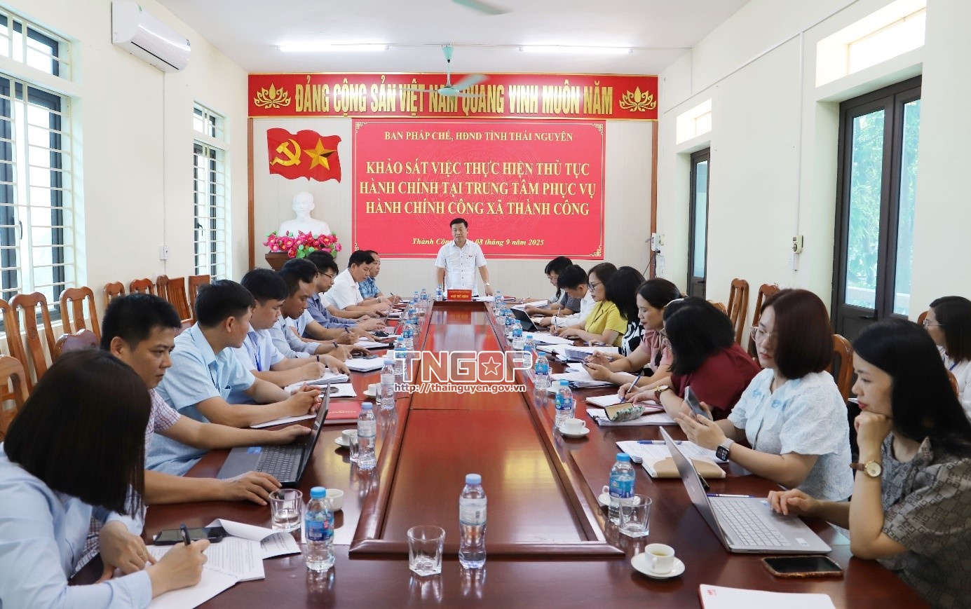 Ngày 8/9, Đoàn khảo sát của Ban Pháp chế, HĐND tỉnh do đồng chí Ngô Thế Hoàn, Trưởng Ban Pháp chế làm Trưởng Đoàn đã có buổi khảo sát thực hiện thủ tục hành chính tại phường Sông Công và xã Thành Công.