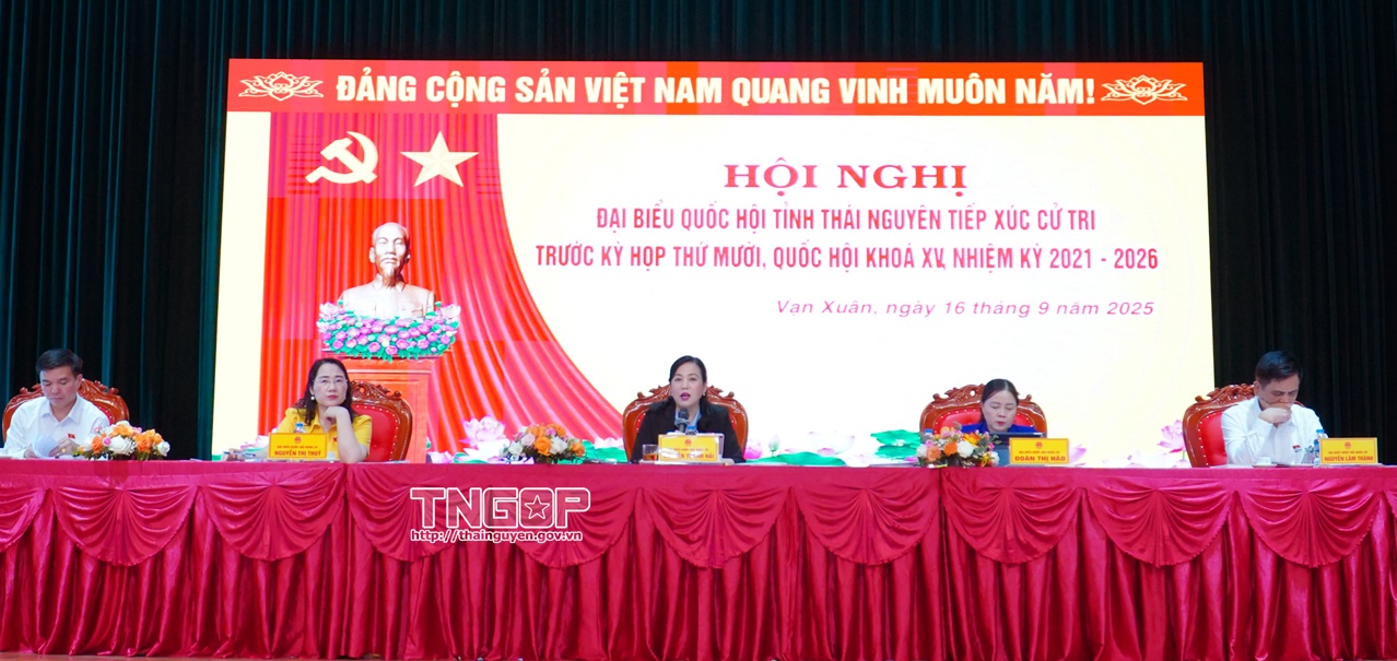 Chiều 16/9, tại phường Vạn Xuân, các đồng chí: Nguyễn Thanh Hải, Ủy viên BCH Trung ương Đảng, Chủ nhiệm Ủy ban Công tác đại biểu của Quốc hội, Phó Trưởng Ban Tổ chức Trung ương; Đoàn Thị Hảo, Ủy viên Ban Thường vụ Tỉnh ủy, Phó Trưởng đoàn phụ trách Đoàn đại biểu Quốc hội (ĐBQH) tỉnh, cùng các ĐBQH tỉnh Thái Nguyên đã tiếp xúc cử tri các xã, phường (Vạn Xuân, Trung Thành, Phổ Yên, Thành Công, Điềm Thụy) trước Kỳ họp thứ Mười, Quốc hội khóa XV.