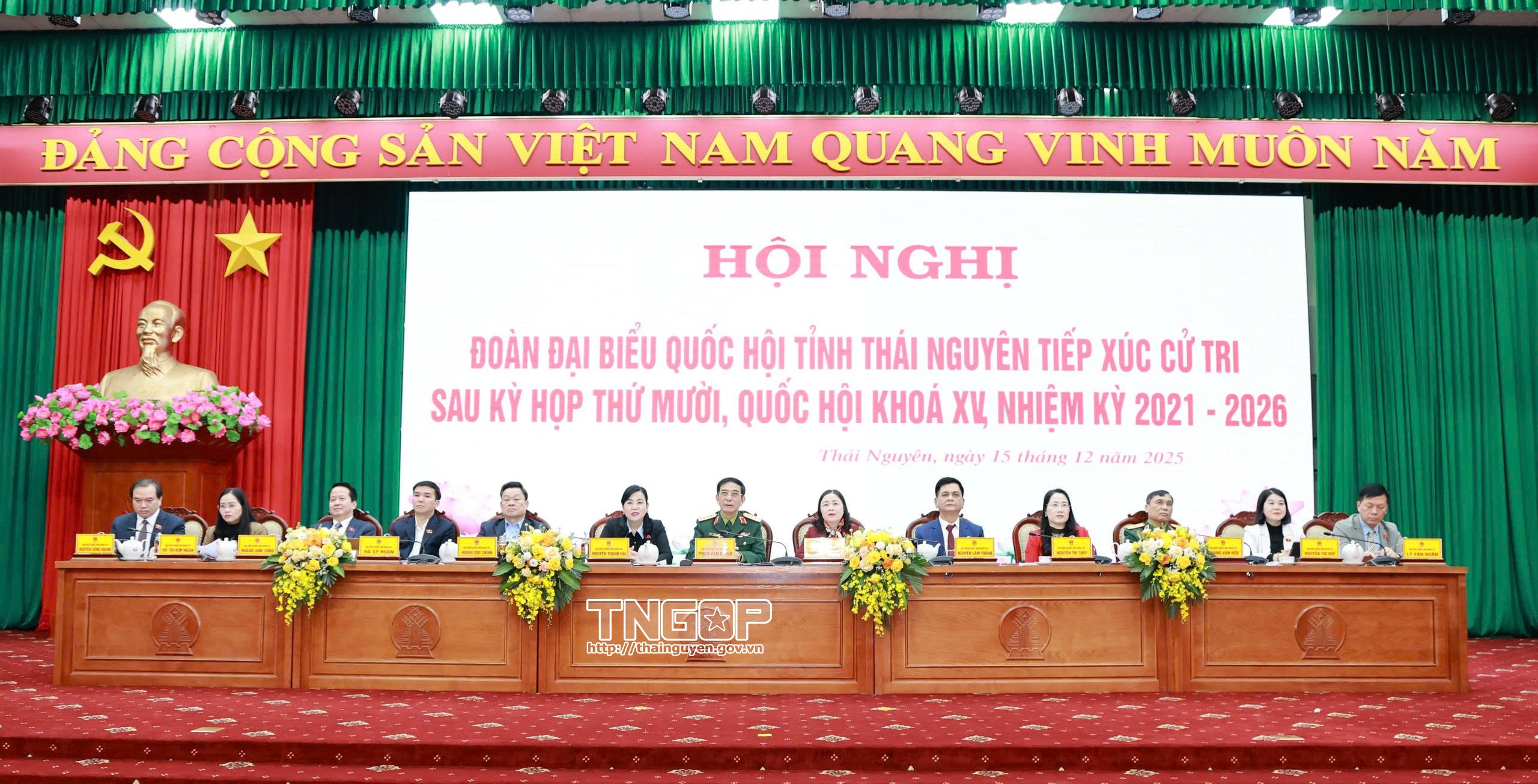 Sáng 15/12, tại trụ sở Đoàn ĐBQH - HĐND - UBND tỉnh, Đoàn đại biểu Quốc hội (ĐBQH) tỉnh Thái Nguyên tổ chức Hội nghị tiếp xúc cử tri sau Kỳ họp thứ Mười, Quốc hội khóa XV. Hội nghị được tổ chức theo hình thức trực tiếp kết hợp trực tuyến, với cử tri của 25 xã, phường tham dự tại điểm cầu chính và kết nối đến 67 điểm cầu tại các xã, phường còn lại.