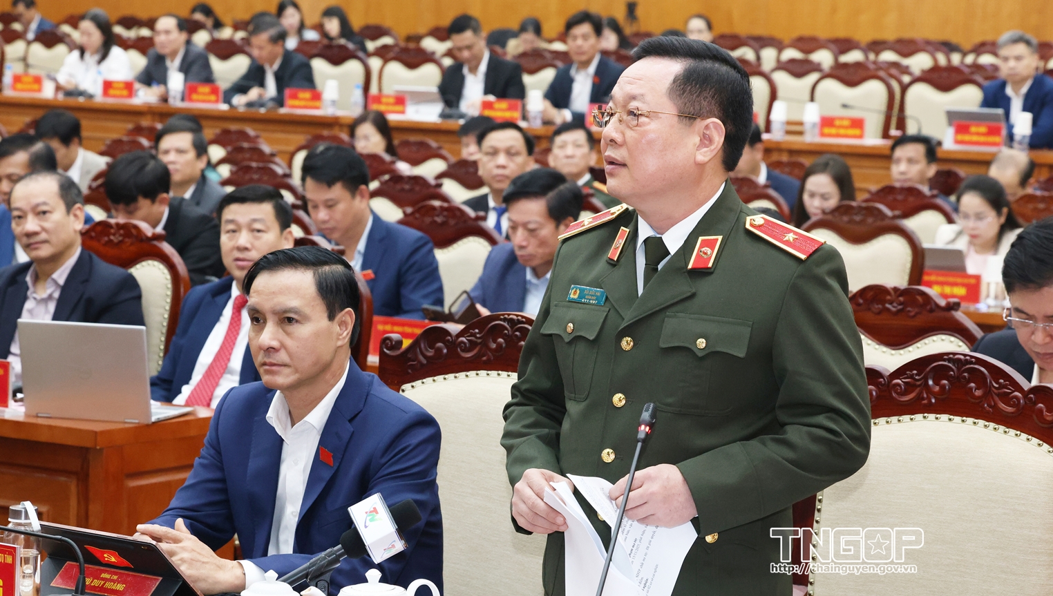 Đồng chí Bùi Đức Hải, Ủy viên BTV Tỉnh ủy, Giám đốc Công an tỉnh giải trình làm rõ việc điều chỉnh chỉ tiêu về quốc phòng - an ninh: “Phấn đấu đến năm 2030, 100% xã, phường trên địa bàn tỉnh không có ma túy”