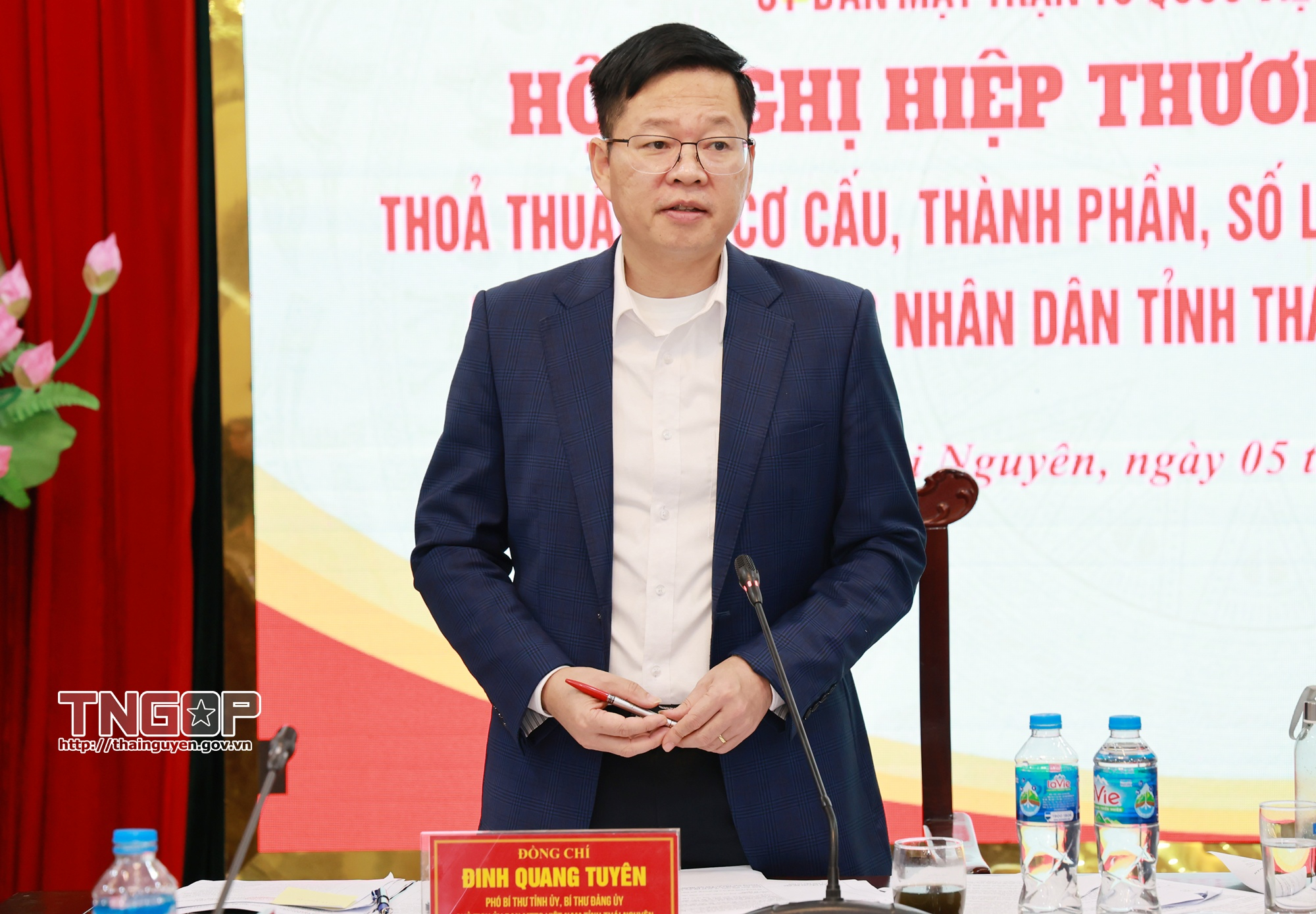 Tại Hội nghị, Thường trực HĐND tỉnh đã trình bày dự kiến cơ cấu, thành phần, số lượng người được giới thiệu ứng cử đại biểu HĐND tỉnh Thái Nguyên, nhiệm kỳ 2026 - 2031. Ủy ban MTTQ tỉnh trình bày dự kiến của Ban Thường trực Ủy ban MTTQ tỉnh về cơ cấu, thành phần, số lượng người của cơ quan, tổ chức, đơn vị được giới thiệu ứng cử HĐND tỉnh Thái Nguyên, nhiệm kỳ 2026 - 2031. Theo dự kiến, tổng số người được bầu là 60 đại biểu. Số lượng người được giới thiệu ứng cử là 140, trong đó số lượng người ứng cử thuộc các cơ quan cấp tỉnh là 39 người; số lượng người ứng cử ở địa phương là 101 người. Số lượng người được giới thiệu ứng cử đảm bảo theo cơ cấu về tỷ lệ nữ, trẻ tuổi, ngoài Đảng, dân tộc thiểu số.