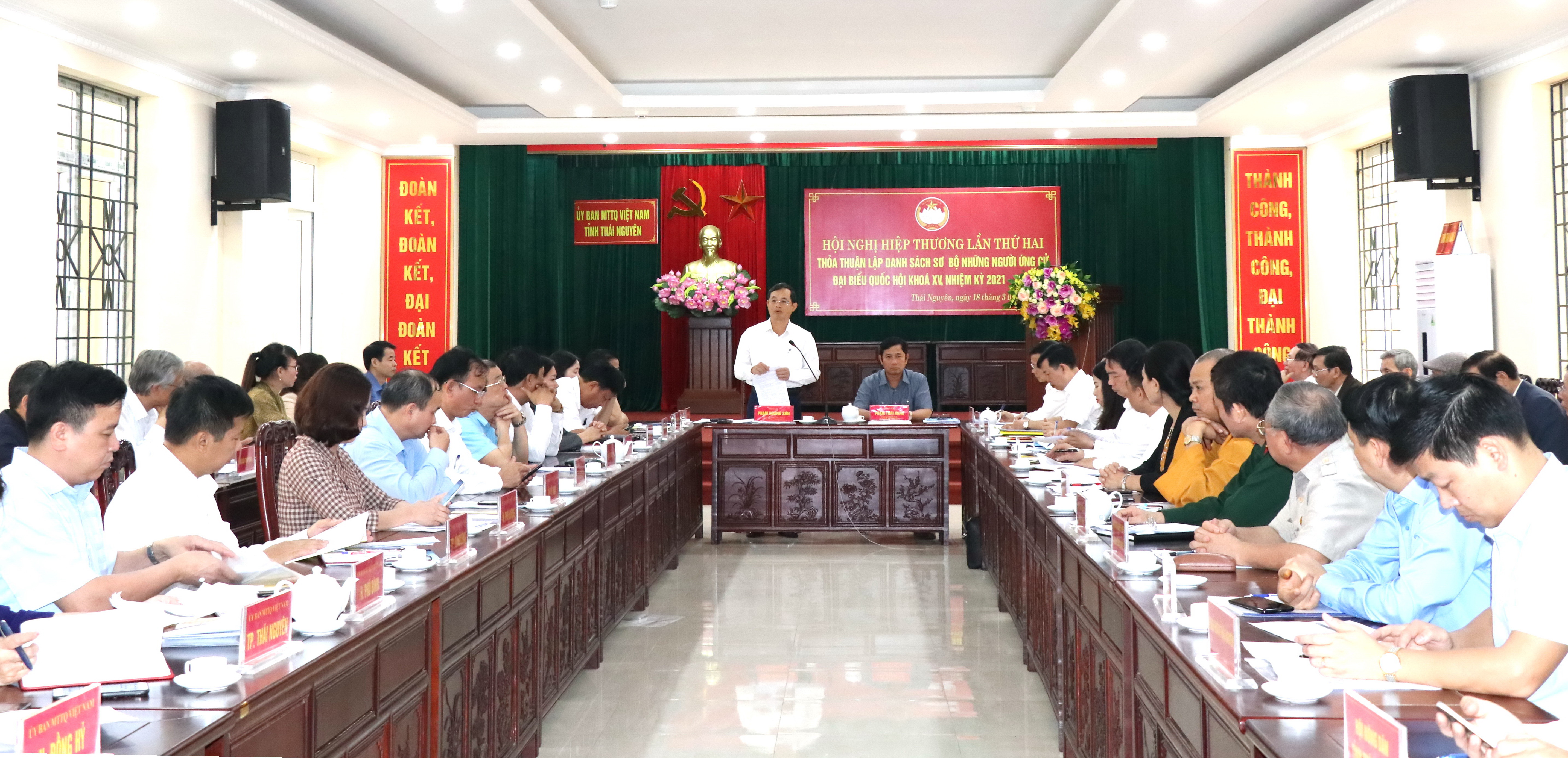Tại hội nghị, trên cơ sở báo cáo tình hình giới thiệu người ứng cử của các cơ quan, tổ chức, đơn vị và tình hình người tự ứng cử ĐBQH khóa XV tại tỉnh Thái Nguyên của Ban Thường trực Ủy ban MTTQ tỉnh, các đại biểu đã thảo luận, thống nhất và biểu quyết nhất trí lập danh sách sơ bộ những người ứng cử ĐBQH khóa XV của tỉnh Thái Nguyên gồm 17 người trong tổng số 22 người được các cơ quan, tổ chức, đơn vị giới thiệu ứng cử ĐBQH (05 người có đơn xin thôi không ứng cử ĐBQH). Trong danh sách sơ bộ 17 người ứng cử ĐBQH khóa XV của tỉnh về cơ cấu có 10/17 người dân tộc thiểu số (58,8%); 12/17 người là phụ nữ (70,5%); 04/17 người trẻ tuổi (23,5%), 01/17 người ngoài Đảng (5,9%); 02/17 người tái cử (11,7%). Tại hội nghị, các đại biểu nhất trí với kế hoạch tổ chức lấy ý kiến nhận xét và tín nhiệm của cử tri nơi cư trú đối với người được cơ quan, tổ chức, đơn vị giới thiệu ứng cử ĐBQH khóa XV, nhiệm kỳ 2021 - 2026.