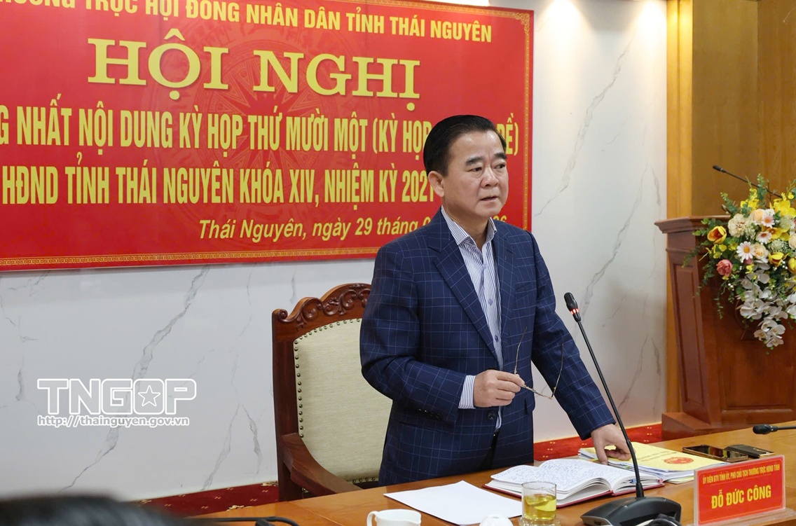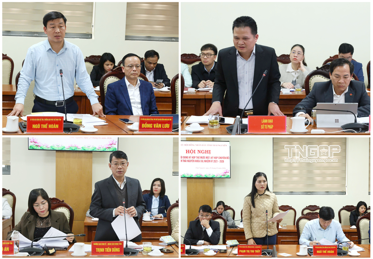 Theo dự kiến, Kỳ họp thứ Mười một, HĐND tỉnh khóa XIV sẽ diễn ra vào ngày 4/2/2026. Tại Hội nghị, các đại biểu đã thảo luận 9 nội dung do UBND tỉnh trình Kỳ họp, trong đó có nhiều nội dung quan trọng làm cơ sở để triển khai thực hiện nhiệm vụ năm 2026, gồm: Tờ trình, dự thảo Nghị quyết điều chỉnh Quy hoạch tỉnh Thái Nguyên thời kỳ 2021 - 2030, tầm nhìn đến năm 2050; Tờ trình, dự thảo Nghị quyết về việc kéo dài thời gian thực hiện và giải ngân kế hoạch đầu tư công vốn ngân sách Trung ương năm 2025 sang năm 2026; Tờ trình, dự thảo Nghị quyết thông qua danh mục lĩnh vực đầu tư, cho vay của Quỹ đầu tư phát triển tỉnh Thái Nguyên giai đoạn 2026 - 2030; Tờ trình, dự thảo Nghị quyết về điều chỉnh một số mục tiêu, nhiệm vụ phát triển kinh tế - xã hội tỉnh Thái Nguyên năm 2026; Tờ trình, dự thảo Nghị quyết về điều chỉnh, bổ sung danh mục các khu đất thực hiện đấu thầu lựa chọn nhà đầu tư thực hiện dự án đầu tư có sử dụng đất trên địa bàn tỉnh...