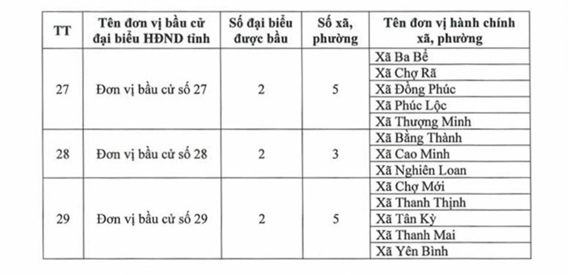 Đơn vị bầu cử số 4 gồm các phường: Bắc Kạn, Đức Xuân; các xã: Phong Quang, Chợ Đồn, Nam Cường, Nghĩa Tá, Quảng Bạch, Yên Phong, Yên Thịnh, Vĩnh Thông, Phủ Thông, Cẩm Giàng, Bạch Thông, Chợ Mới, Thanh Thịnh, Tân Kỳ, Thanh Mai, Yên Bình. Số đại biểu Quốc hội được bầu là 2 đại biểu.