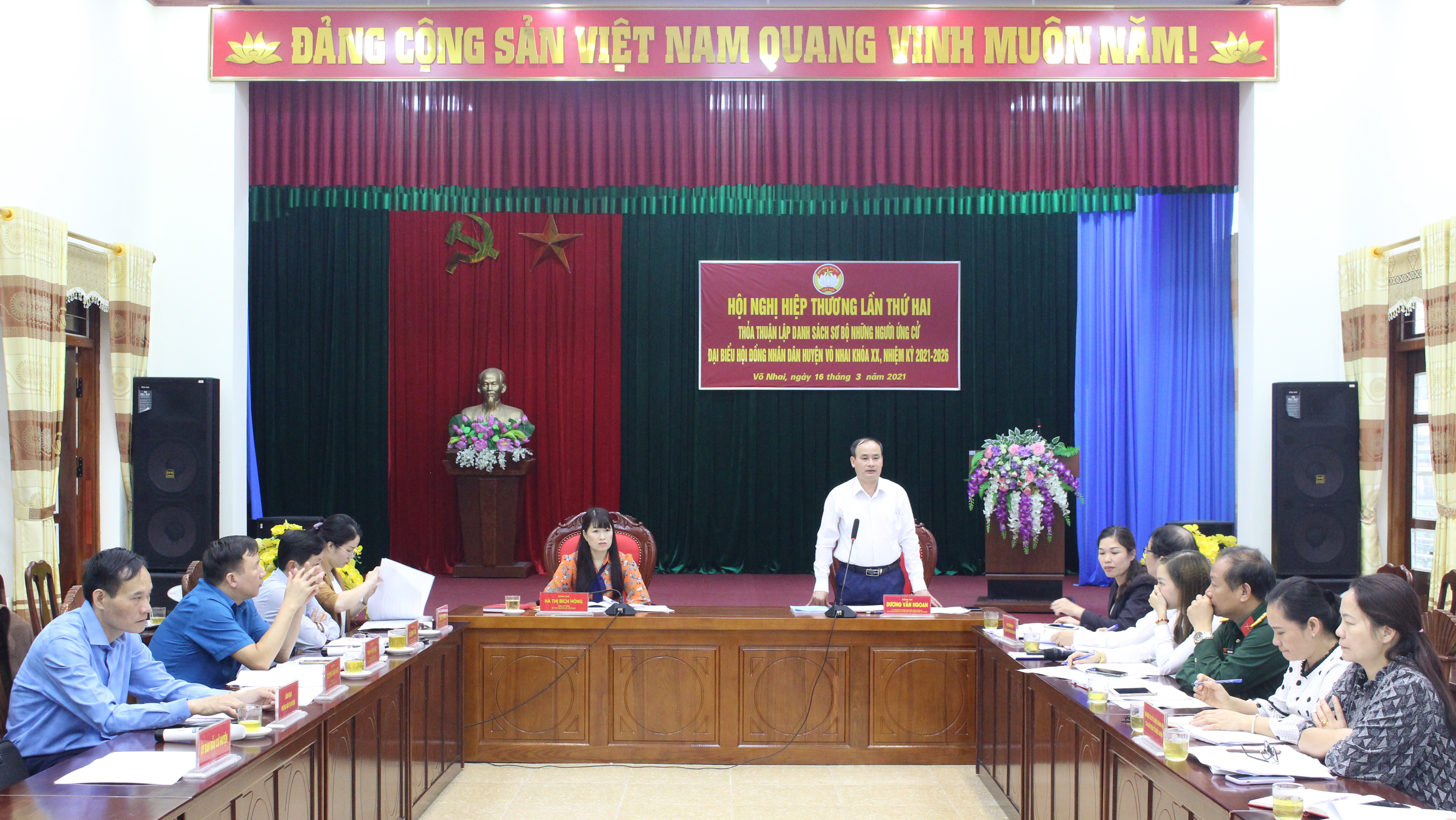Là địa bàn có đông đồng bào dân tộc thiểu số, vì vậy công tác tuyên truyền được huyện Võ Nhai và các xã, thị trấn đặt lên hàng đầu, với nhiều hình thức phong phú, đa dạng để Nhân dân, đồng bào dân tộc thiểu số hiểu rõ mục đích, ý nghĩa, tầm quan trọng của cuộc bầu cử. Việc tuyên truyền được chia làm 03 đợt cao điểm, thông qua hệ thống loa truyền thanh cơ sở, đồng thời lồng ghép trong các cuộc họp xóm và các hội nghị quán triệt công tác bầu cử, hội nghị cử tri, hiệp thương... Bên cạnh đó, công tác hiệp thương, giới thiệu người ứng cử được huyện thực hiện đúng quy trình và đảm bảo tiến độ thời gian. Đến nay, Ủy ban MTTQ các cấp của huyện đã tổ chức xong Hội nghị hiệp thương lần thứ hai, thống nhất lập danh sách sơ bộ những người ứng cử đại biểu HĐND huyện gồm 74 người; danh sách sơ bộ những người ứng cử đại biểu HĐND cấp xã gồm 746 người. Toàn huyện Võ Nhai nhiệm kỳ này được bầu 34 đại biểu HĐND cấp huyện, 318 đại biểu HĐND cấp xã. Hiện nay huyện đang tích cực tổ chức hội nghị lấy ý kiến nhận xét và tín nhiệm của cử tri nơi cư trú đối với người ứng cử, chuẩn bị các bước cho Hội nghị hiệp thương lần thứ ba. Bên cạnh đó, các địa phương, đơn vị bầu cử trong huyện đang kiểm kê, thống kê con dấu, hòm phiếu và các điều kiện vật chất khác phục vụ cho cuộc bầu cử.