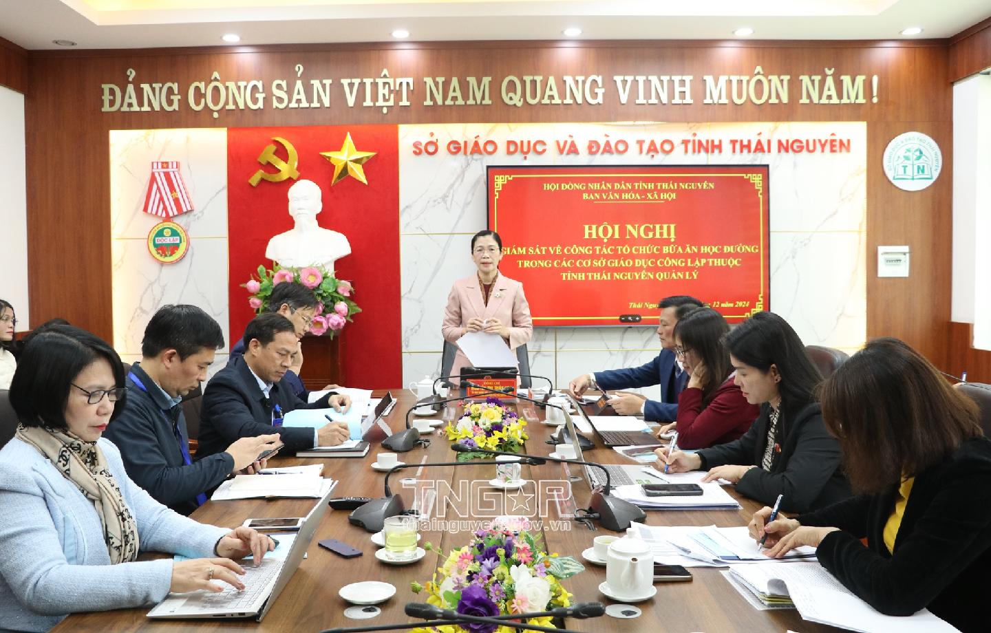 Chiều 16/12, Ban Văn hóa - Xã hội, HĐND tỉnh tổ chức Hội nghị giám sát về công tác tổ chức bữa ăn học đường trong các cơ sở giáo dục công lập và tình hình triển khai thực hiện một số Nghị quyết của HĐND tỉnh trong lĩnh vực giáo dục và đào tạo trên địa bàn tỉnh Thái Nguyên đối với Sở Giáo dục và Đào tạo tỉnh.