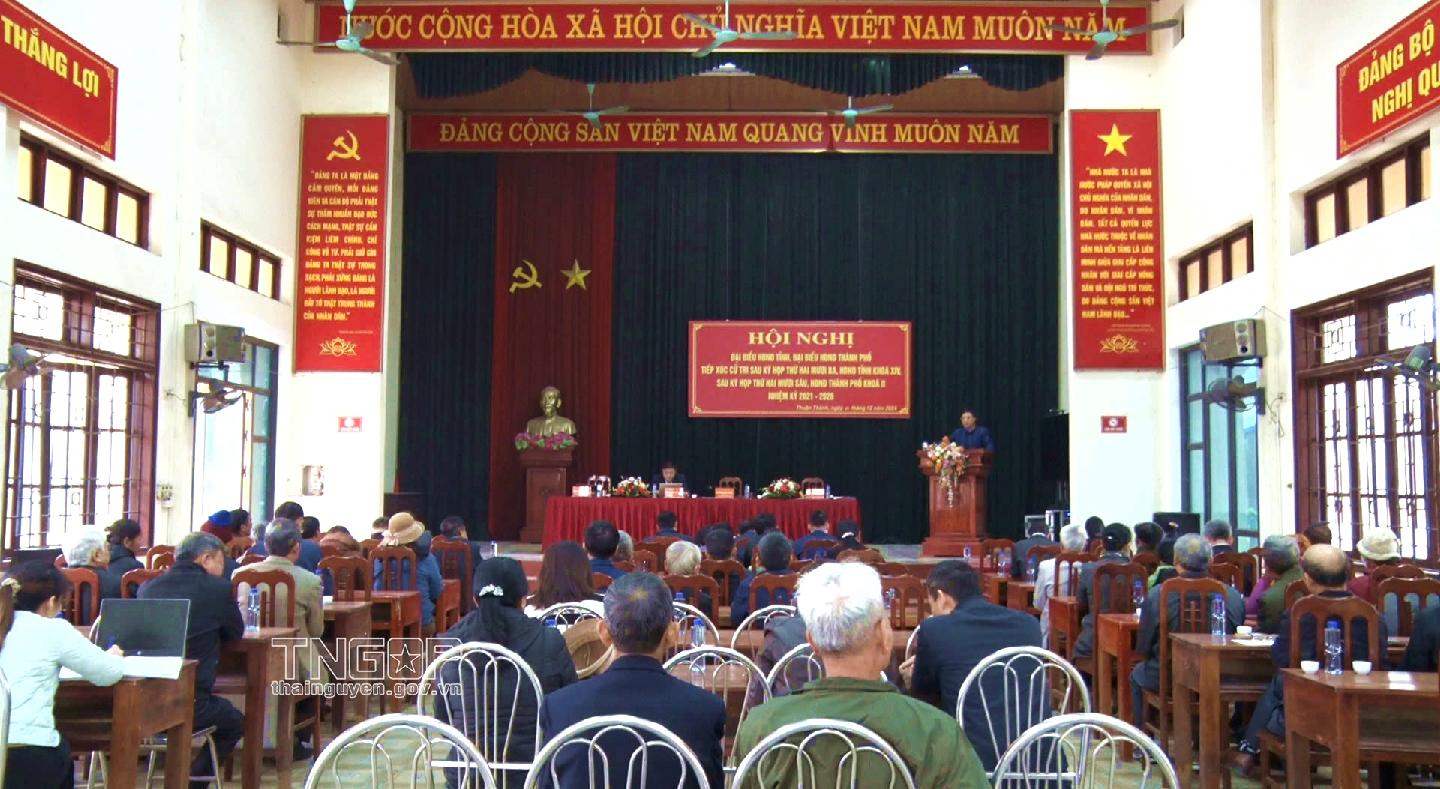 Thực hiện kế hoạch tiếp xúc cử tri sau kỳ họp thường lệ cuối năm 2024, sáng 19/12, đồng chí Nguyễn Thanh Bình, Phó Chủ tịch UBND tỉnh và các đại biểu HĐND tỉnh khóa XIV, đại biểu HĐND TP. Thái Nguyên khóa XIX đã tiếp xúc cử tri phường Hương Sơn, TP. Thái Nguyên.